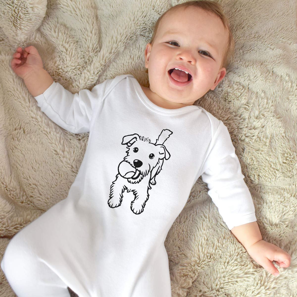 Little ones can sleep peacefully in this super soft romper sleepsuit. Our unisex jumpsuits are made from 100% cotton and are printed on the front with a unique design. Practical functions include popper fastenings for ease of changing and built-in feet.