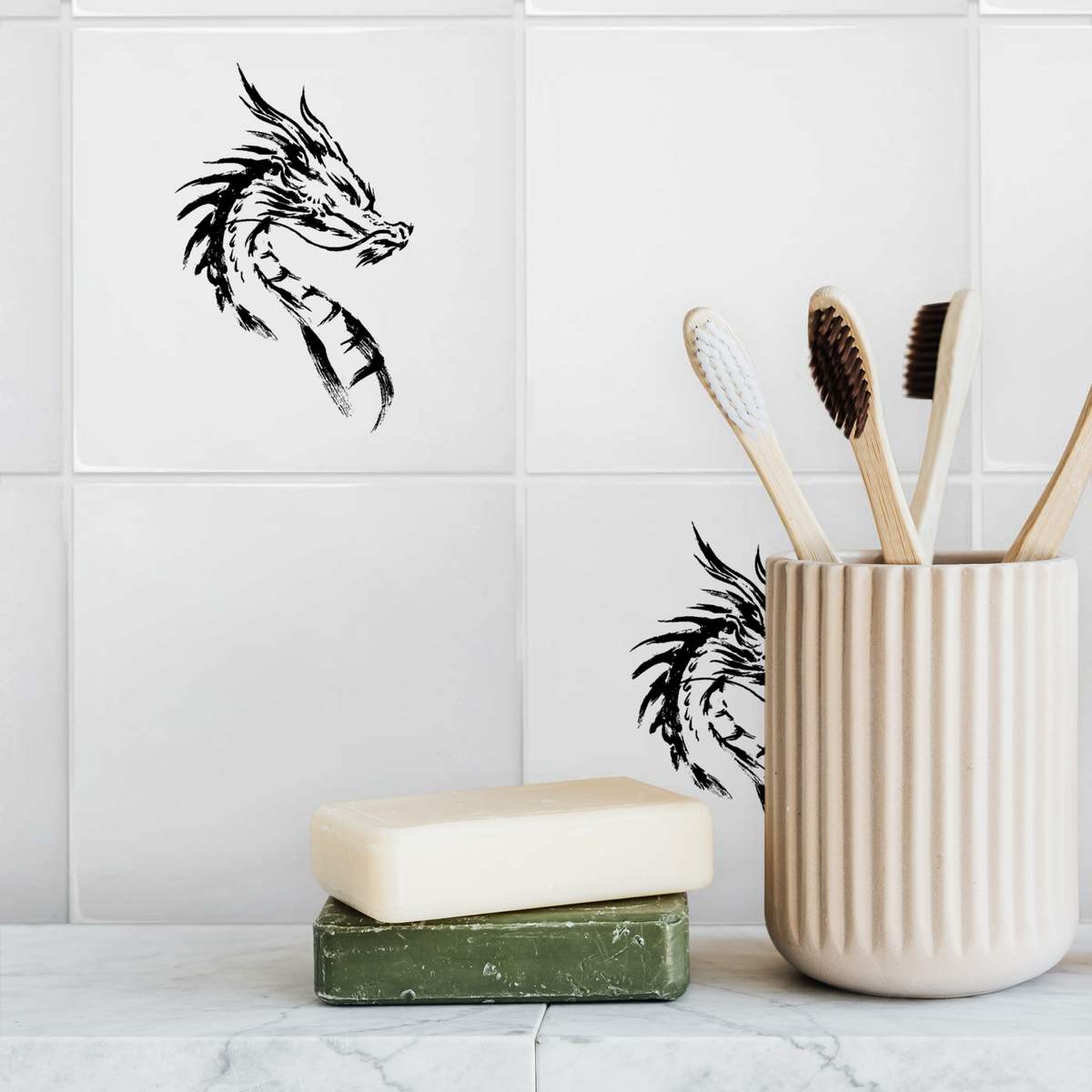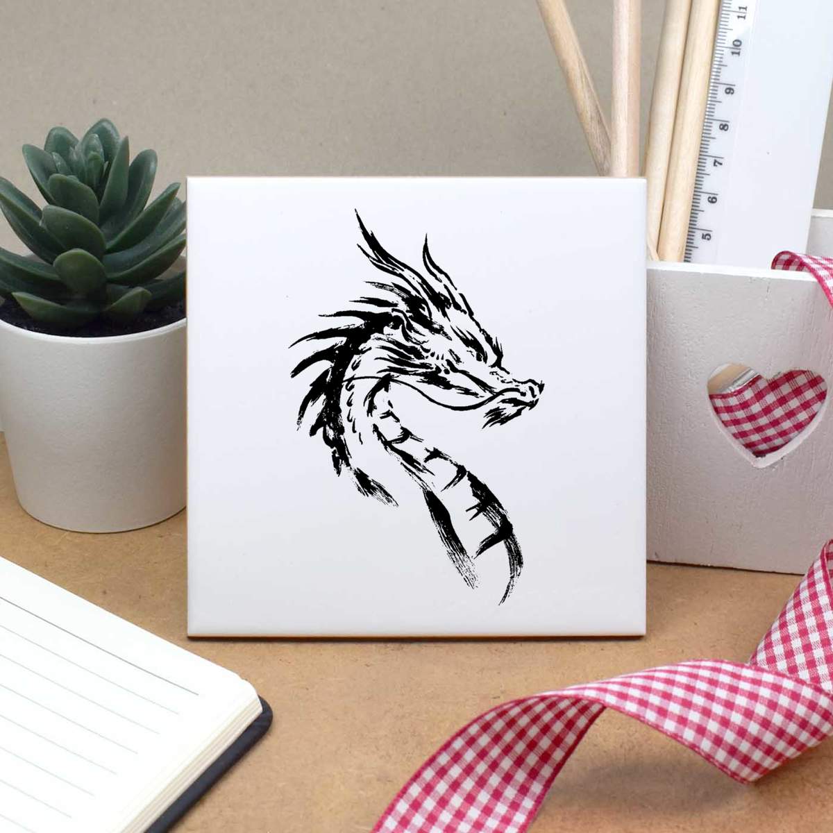 'Japanese Dragon Portrait' 108mm Square Ceramic Tile (TD00037094)