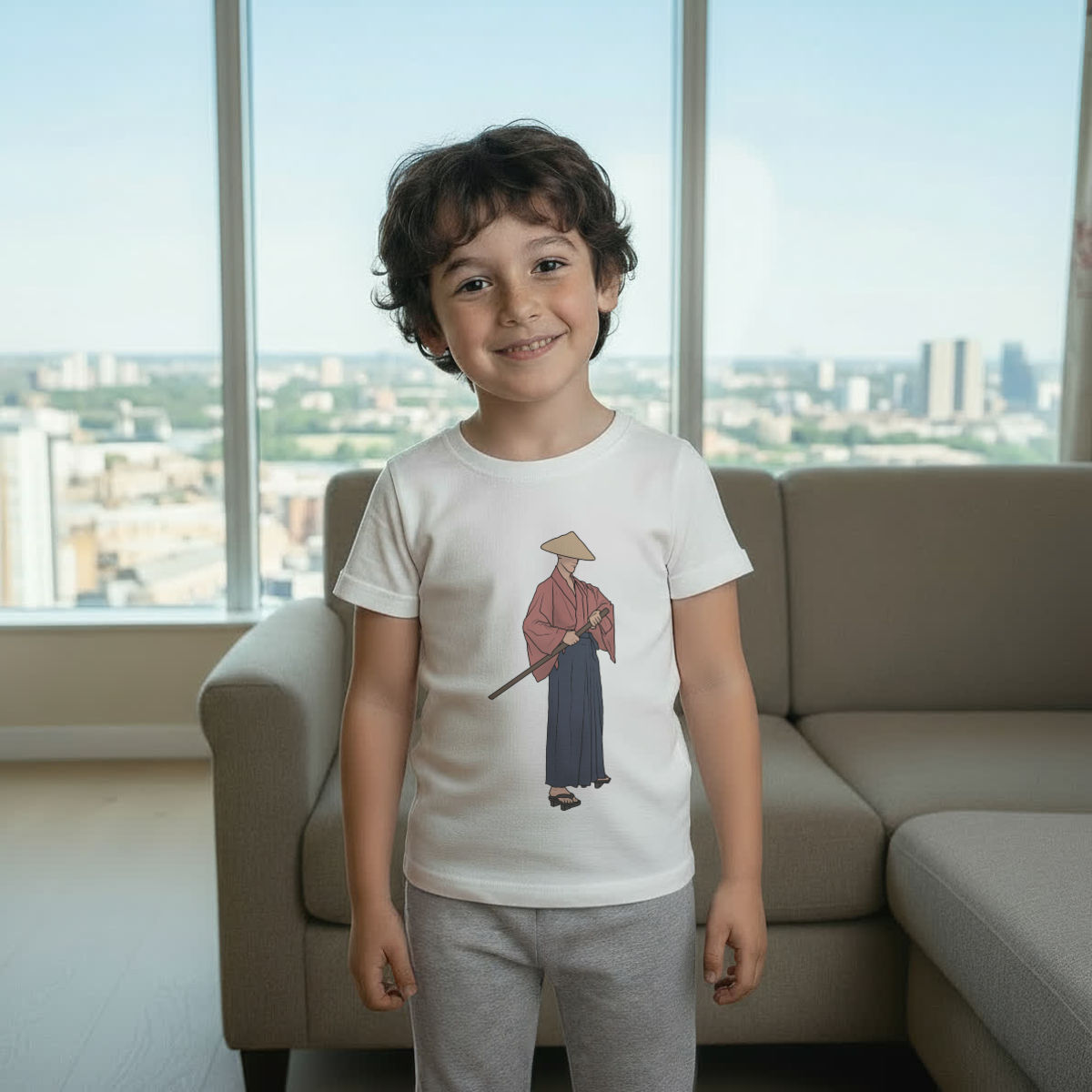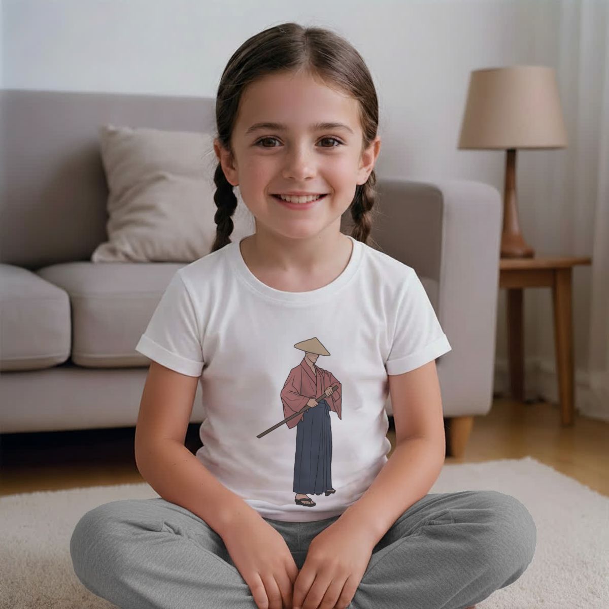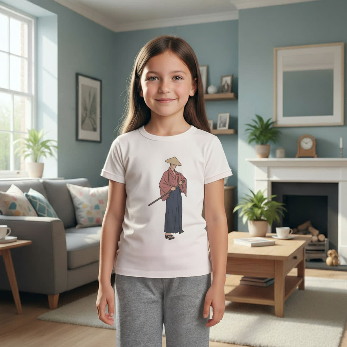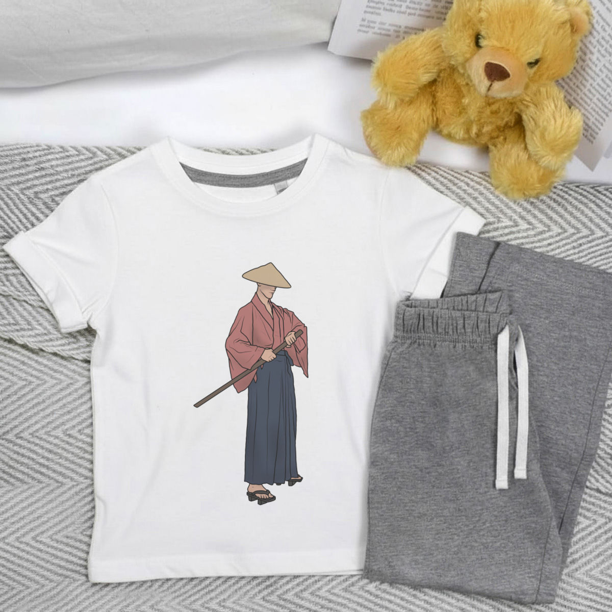 'Japanese Samurai' Kids Cotton Pyjama Set – Comfortable Children's Nightwear, Sleepwear and Loungewear - Unisex for Boys and Girls - Grey, 5-6 Years (KP00126712)