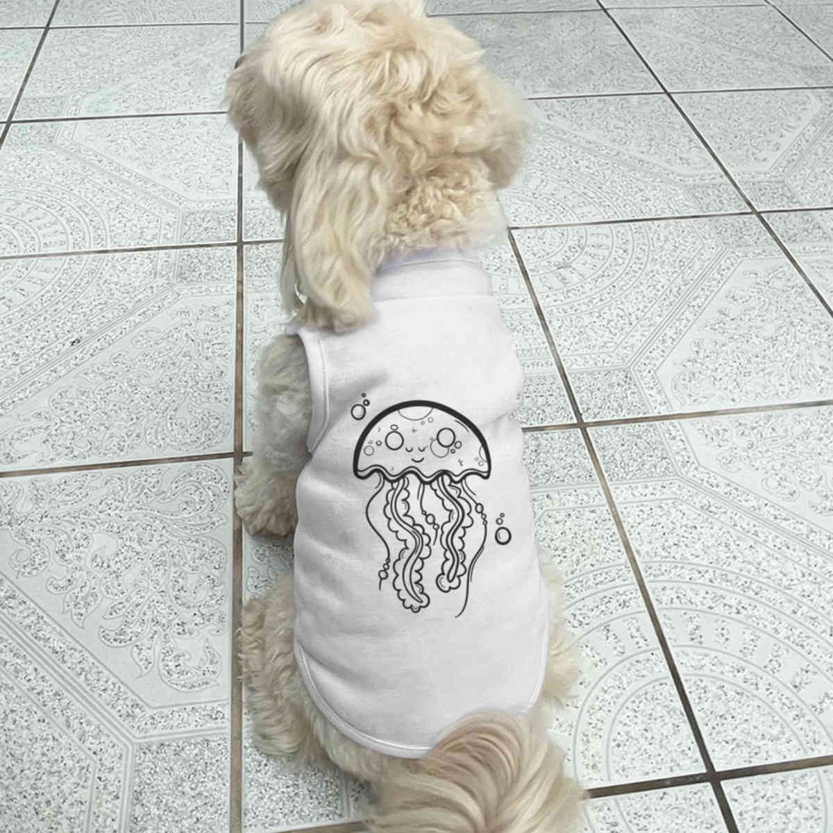 Give your furry friend a fresh new look with this adorable white dog T-shirt, designed to turn heads with its unique print on the back! Made from 100% polyester, it offers a comfortable yet firm stretch, perfect for both playtime adventures and cozy cuddles. Whether your dog loves to play outdoors or cuddle indoors, this T-shirt provides all-day comfort and style.