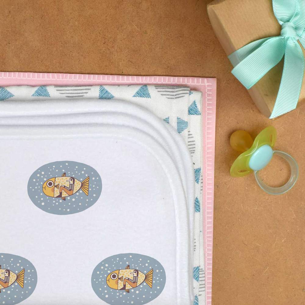 Each cloth is printed on one side with a unique pattern created by one of our artists. It's made from a super soft fleece so it's ultra-absorbent, fast drying and delicate on your baby's skin.