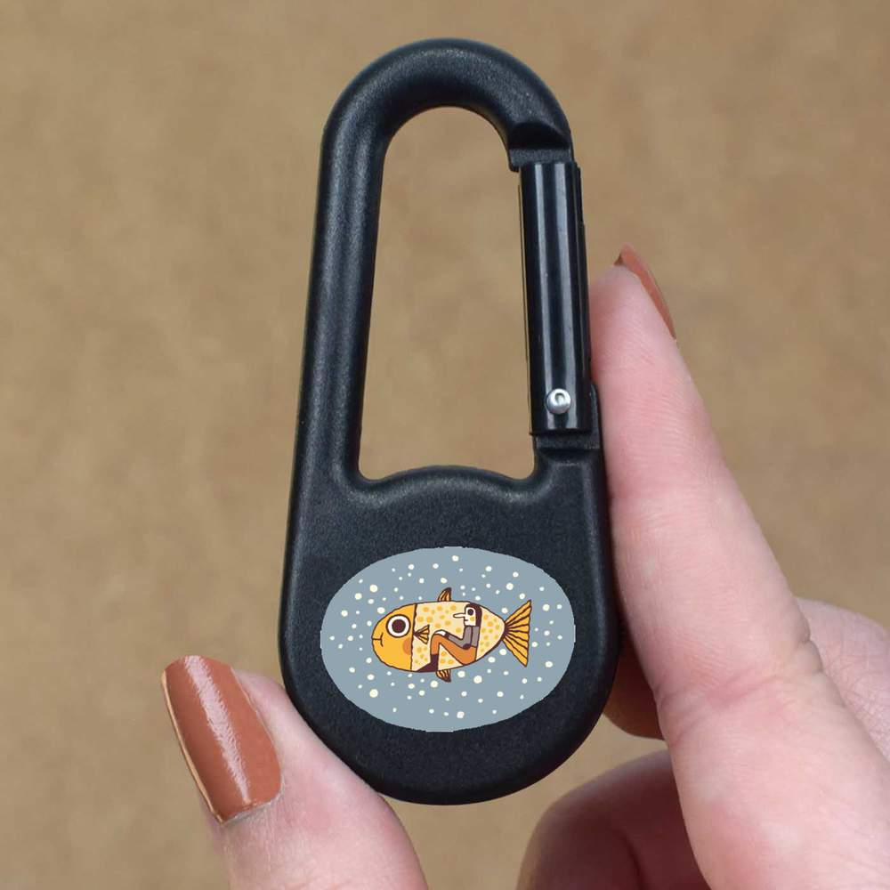 This handy compass keyring is printed on the reverse with one of our awesome designs and makes a great gift for lovers of camping, hiking, fishing and of course, for people who are always getting lost. Practical and fun, each lightweight plastic keyring has a secure carabiner clasp for attaching to backpacks, belts and equipment.