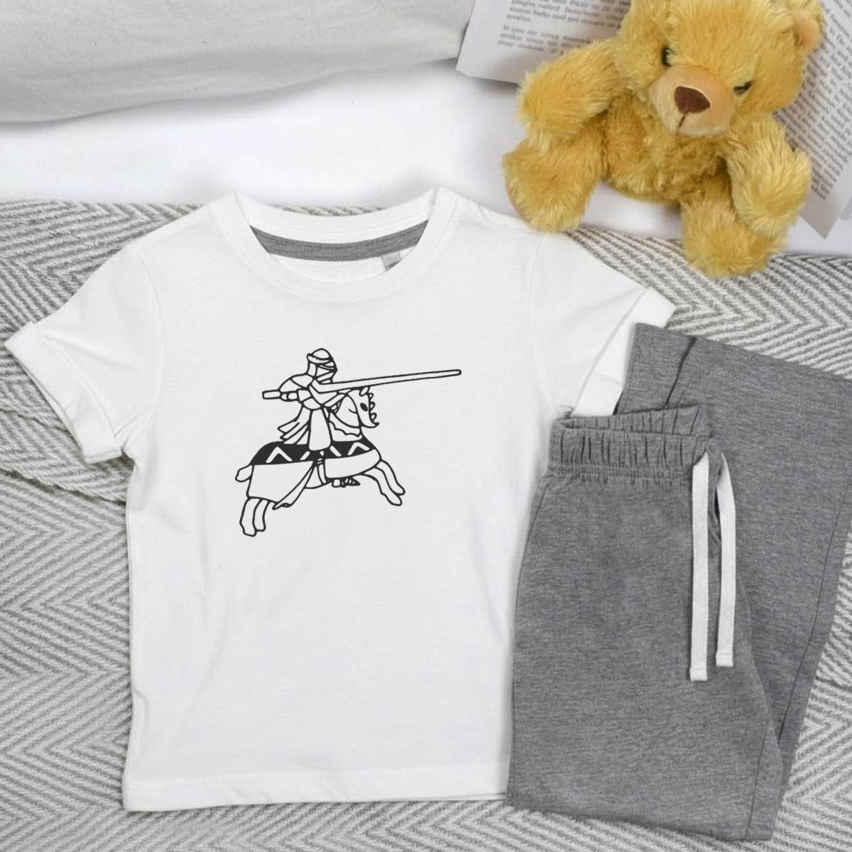 'Jousting Knight' Kids Cotton Pyjama Set – Comfortable Children's Nightwear, Sleepwear and Loungewear - Unisex for Boys and Girls - Grey, 7-8 Years (KP00004555)