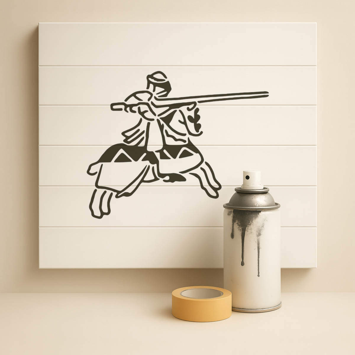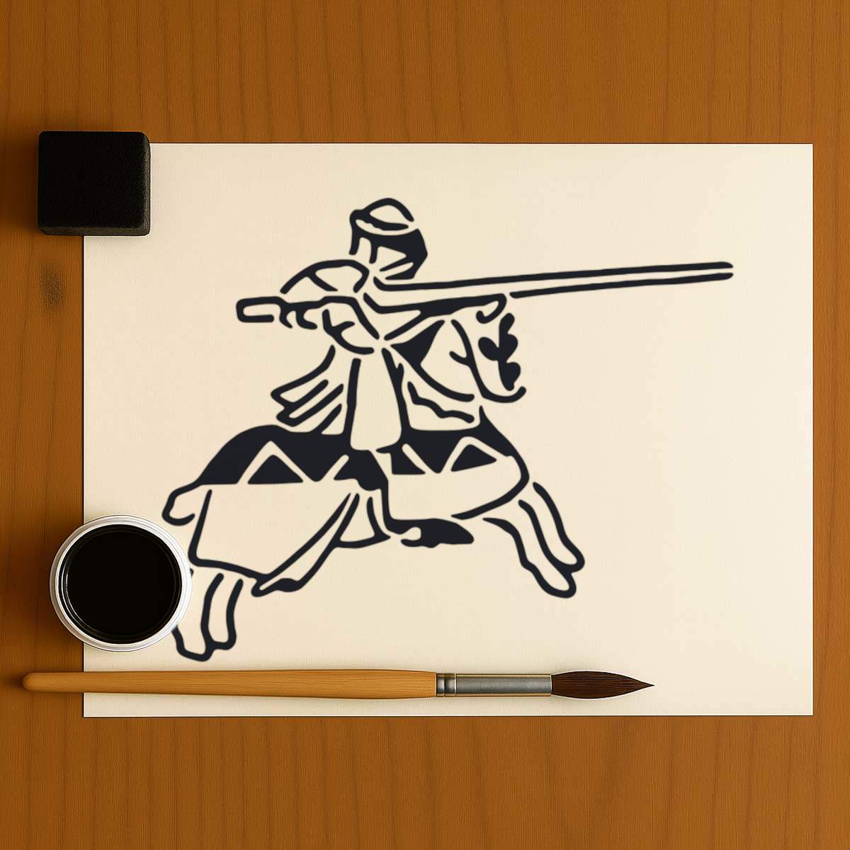 'Jousting Knight' Reusable Stencil – Durable Decorative Template for Painting and Spraying on Walls, Tiles, Wood, Fabric & Craft Projects - M (A5) (WS00031608)