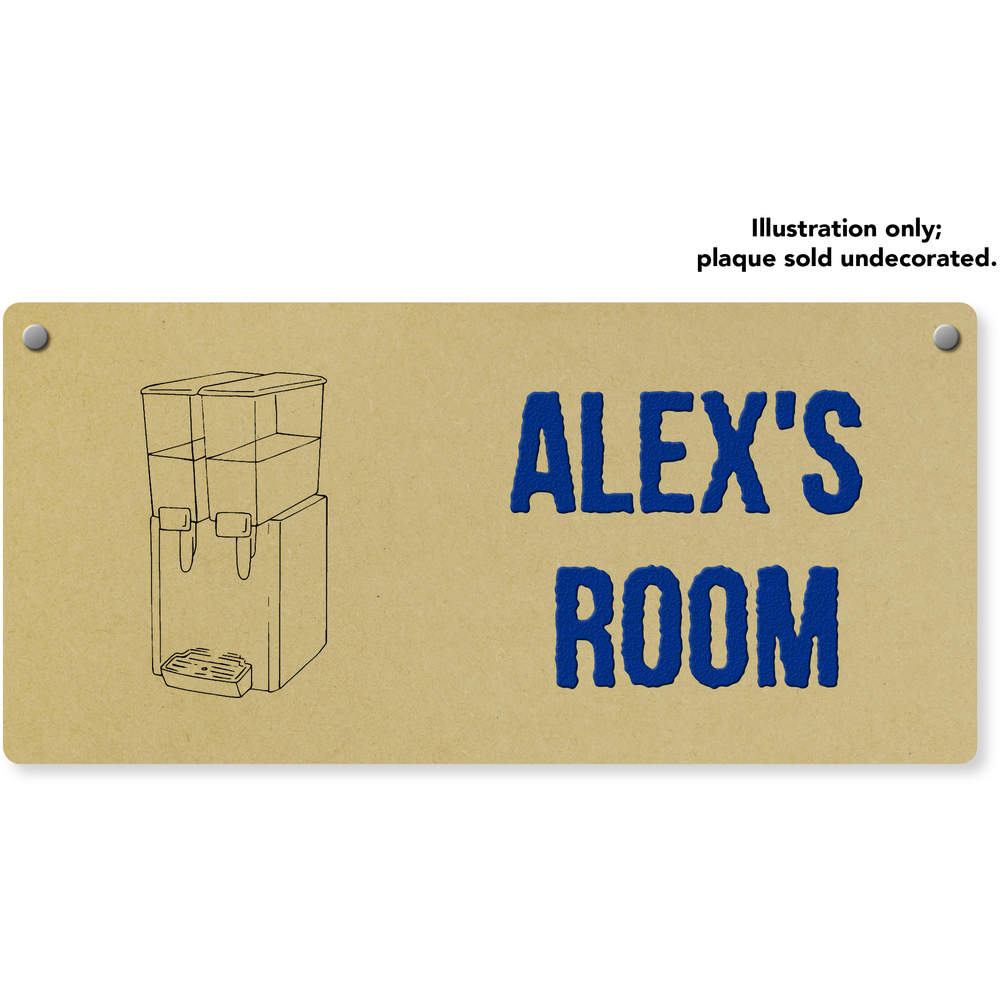 The plaques are made from a slim 3mm MDF - making them durable, but also very light. They have two holes, one in each of the top corners, and can either be screwed in place or have rope threaded through them to hang them. Neither screws nor rope are included with the plaque.