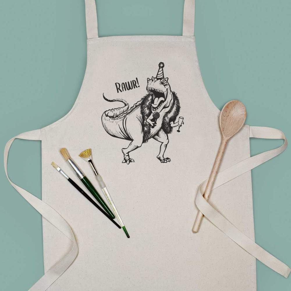 This apron can be used in the kitchen or for arts and crafts; perfect for little ones who love baking, painting or messy play. Our kid’s aprons are made from 100% cotton canvas and are printed on the front with a unique design. Each apron has a neck tie with hook and loop fastening and 60cm waist ties.