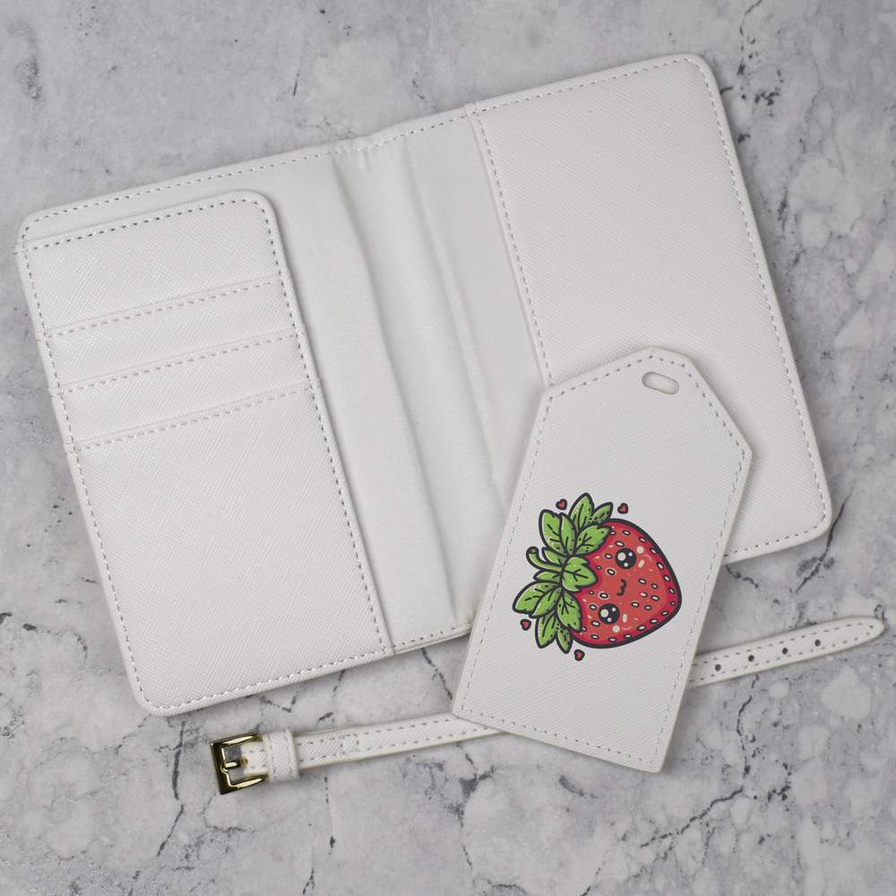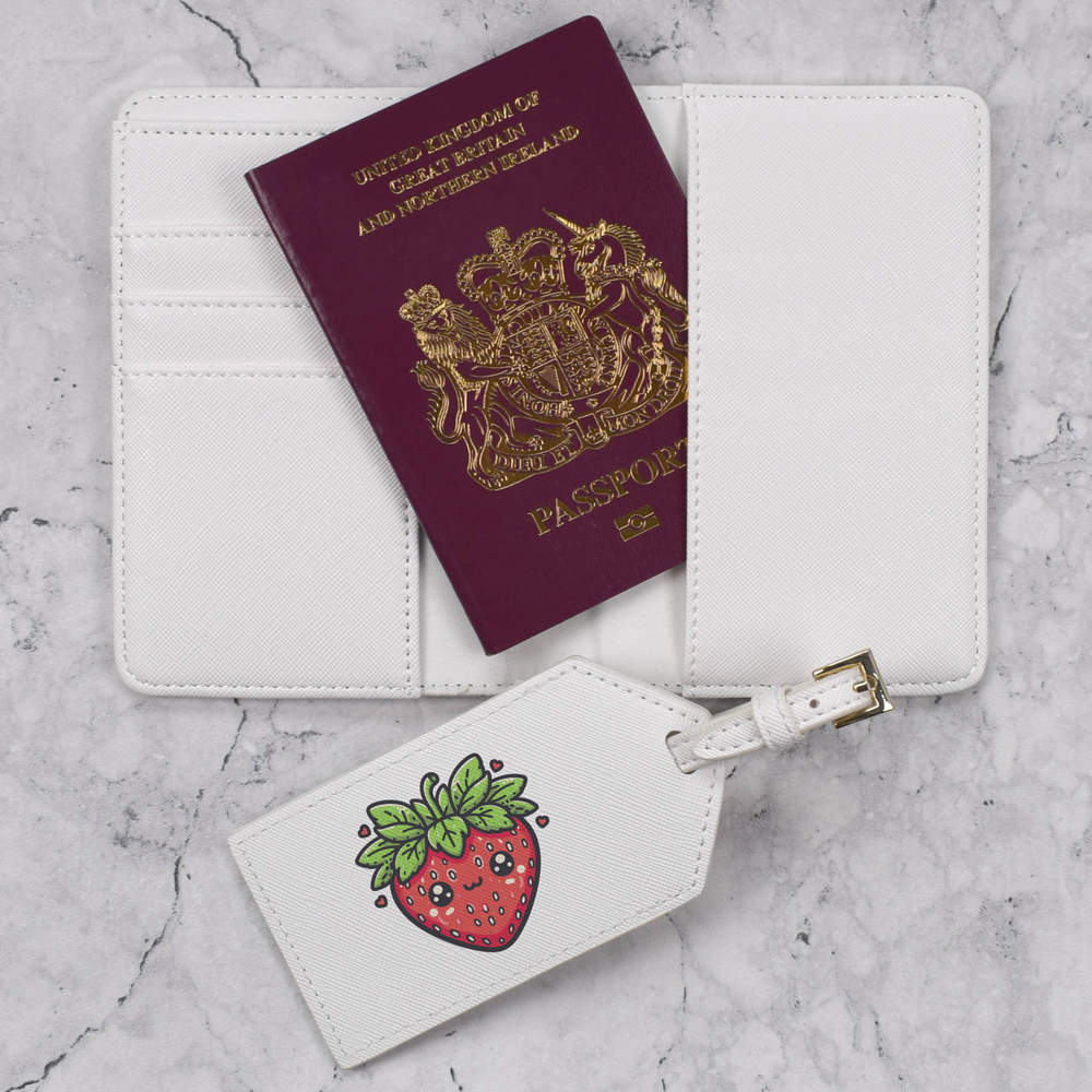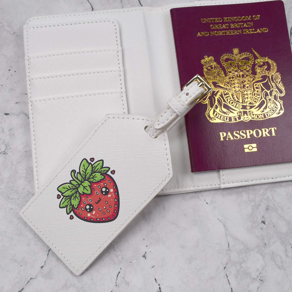 A luxury travel set for holiday makers and jet setters! This premium duo consists of a passport cover and matching luggage tag; both made from white, leather-look PU and printed with a unique design.