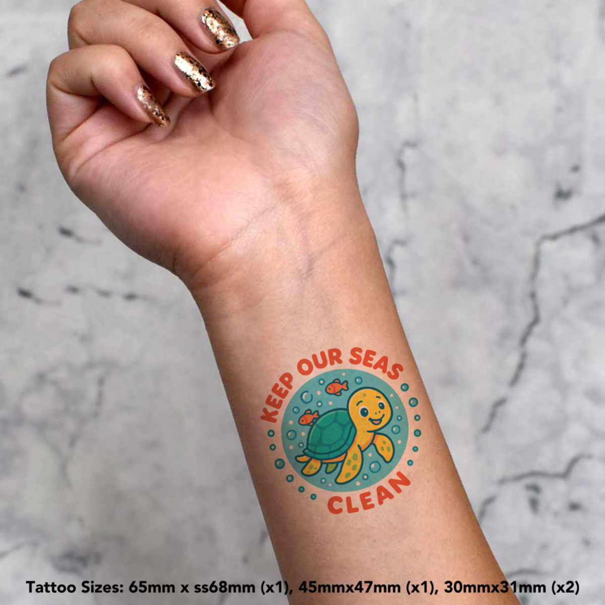 'Keep Our Sea Clean' Temporary Tattoos - Water Resistant, Skin-Safe, Non-Toxic Transfers (TO054579)