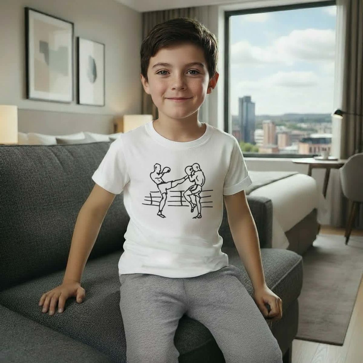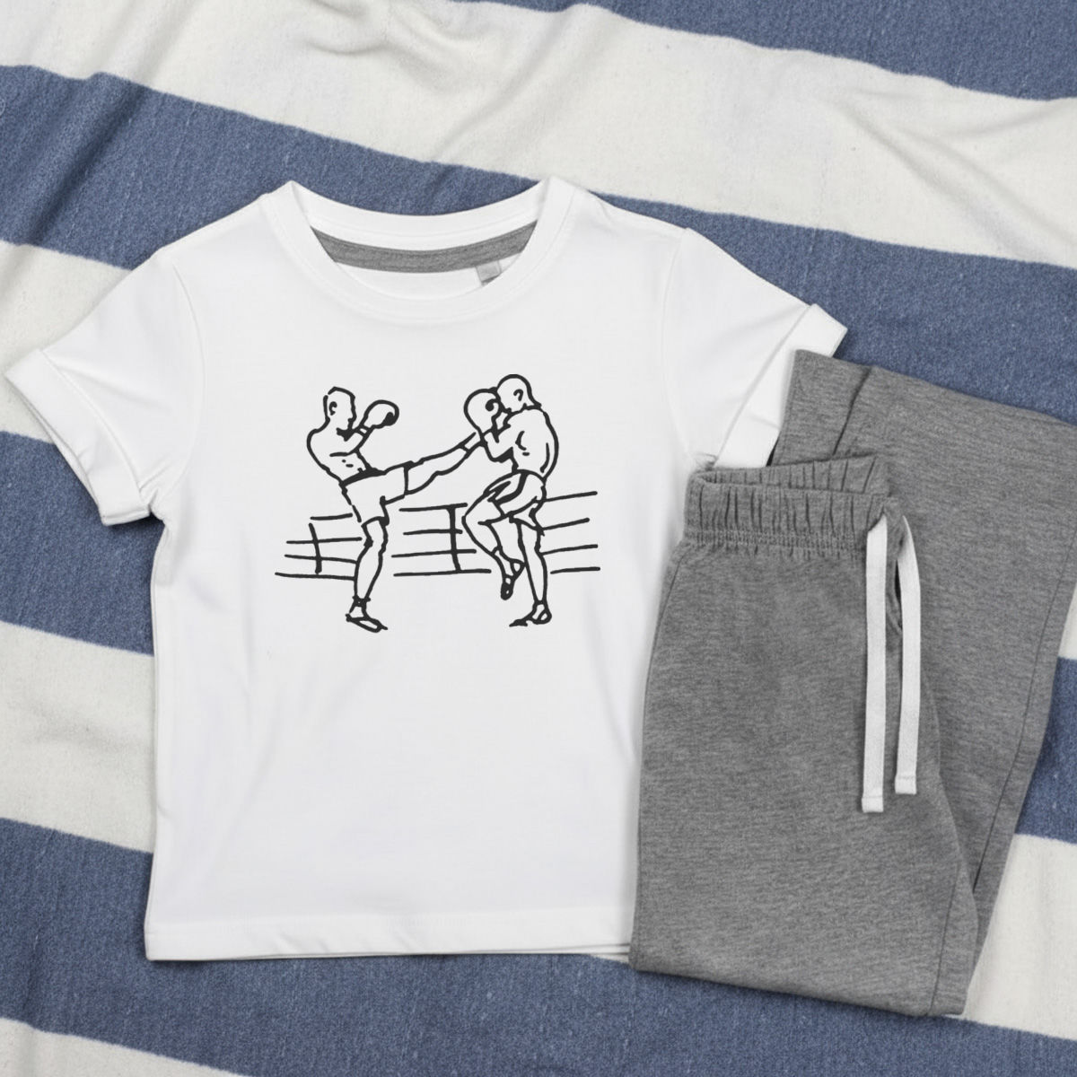 'Kick Boxing' Kids Cotton Pyjama Set – Comfortable Children's Nightwear, Sleepwear and Loungewear - Unisex for Boys and Girls - Grey, 9-10 Years (KP00113189)