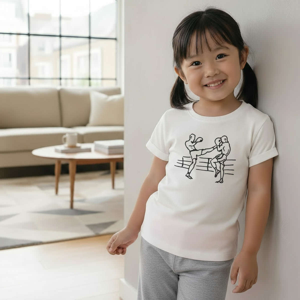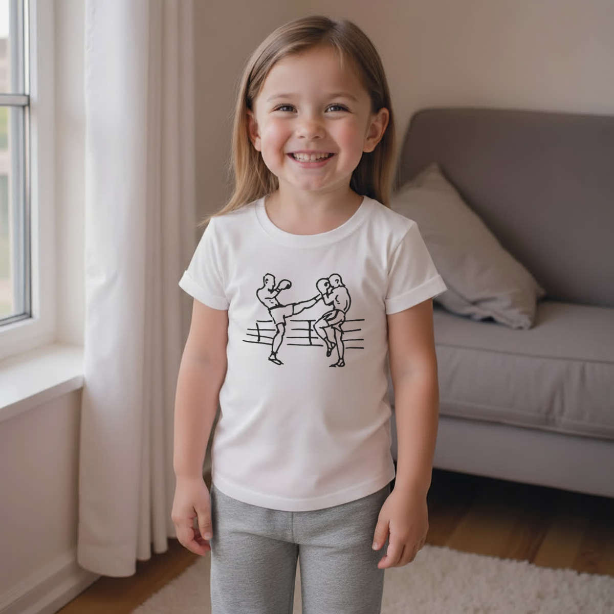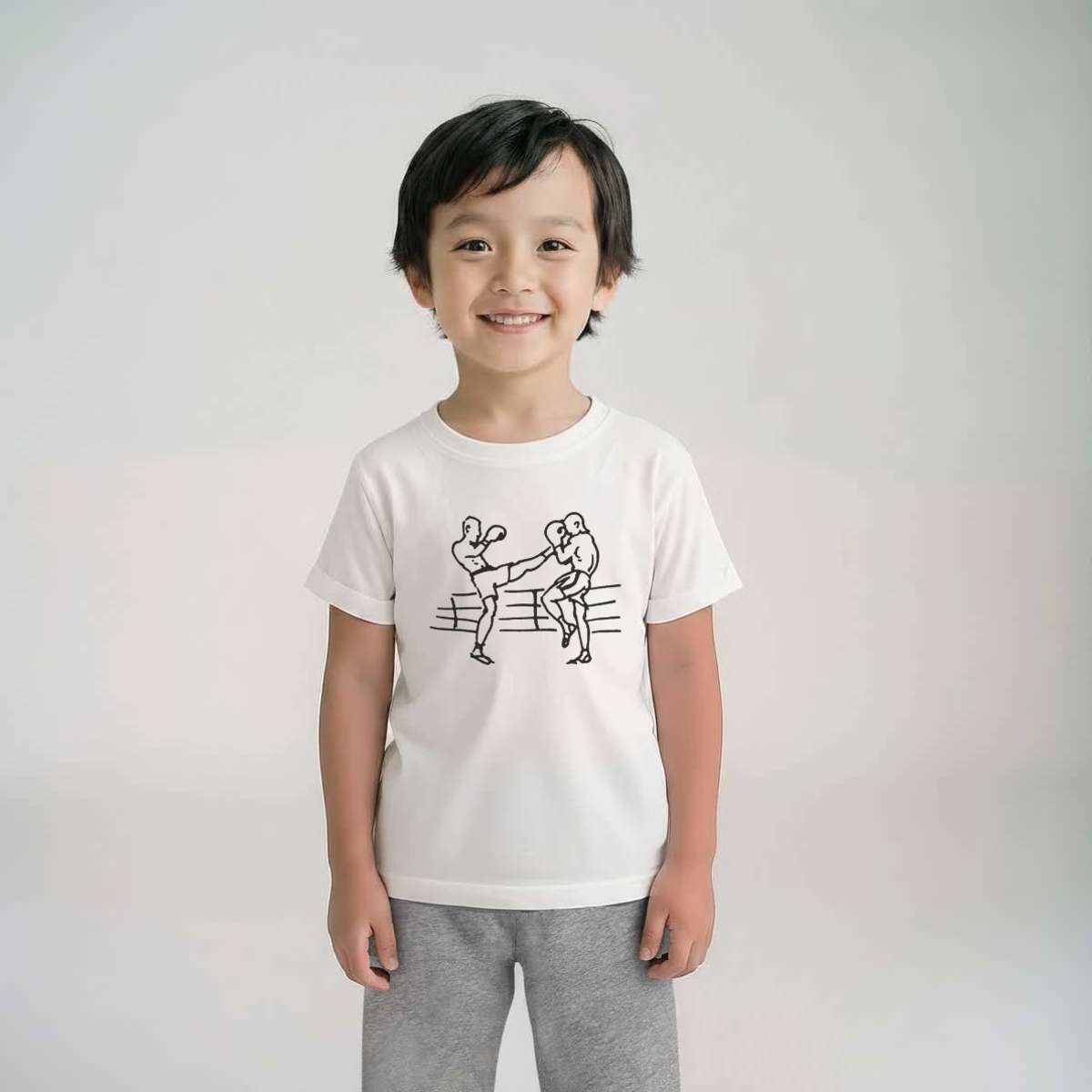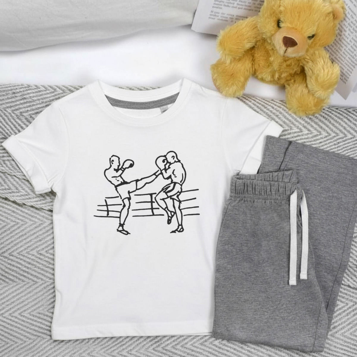 'Kick Boxing' Kids Cotton Pyjama Set – Comfortable Children's Nightwear, Sleepwear and Loungewear - Unisex for Boys and Girls – Grey (KP037255)