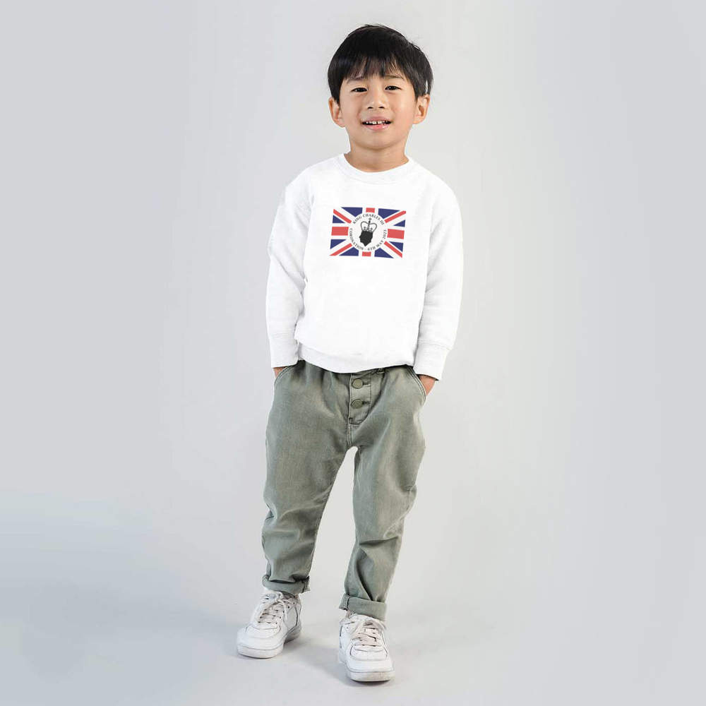 'King Charles Coronation Union Jack Flag' Kid's Sweatshirt / Jumper (5-6 Years) (KW00116547)