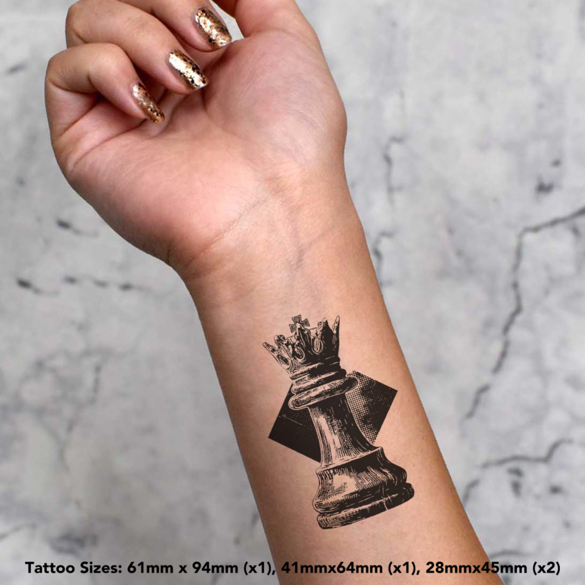 'King Chess Piece' Temporary Tattoos - Water Resistant, Skin-Safe, Non-Toxic Transfers (TO053823)