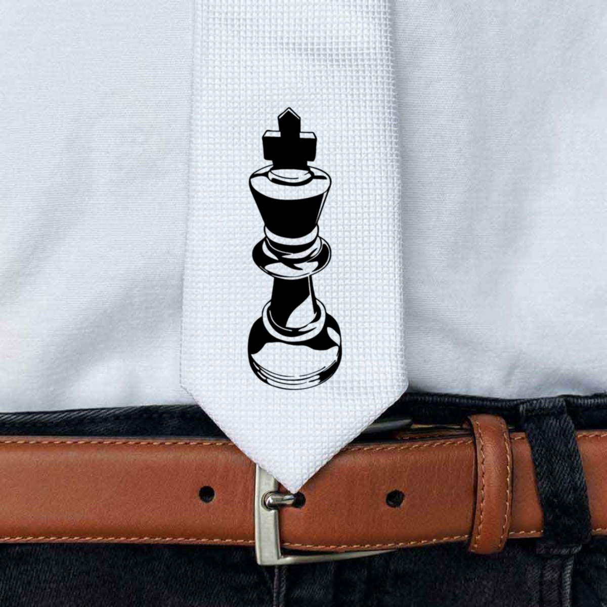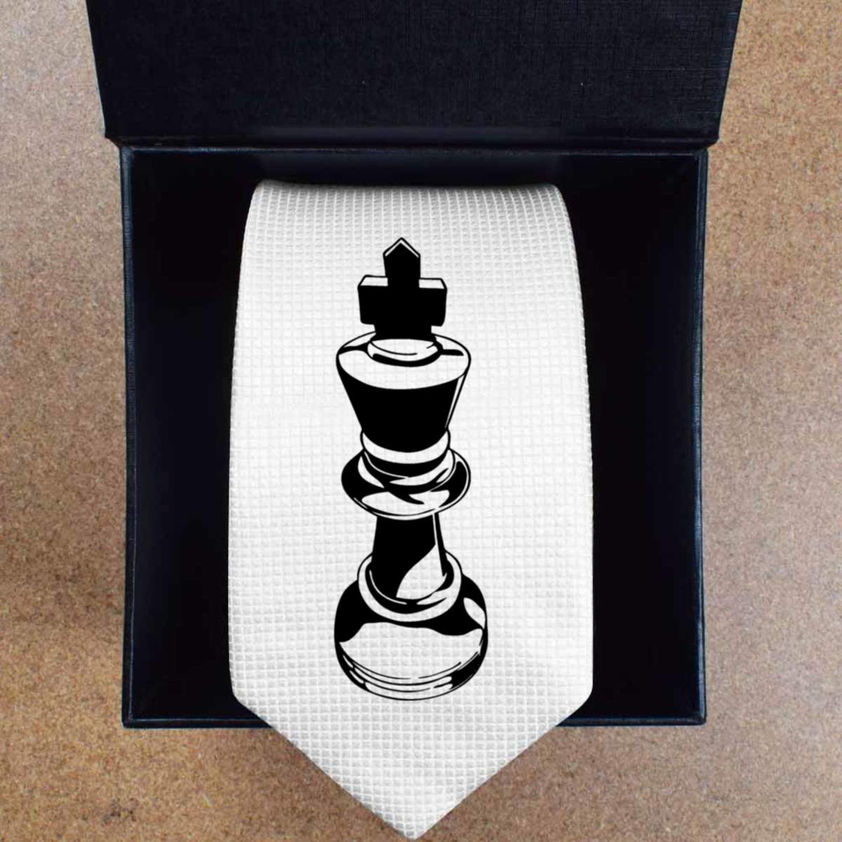 'King Chess Piece' White Tie / Necktie with Gift Box (AT00002605)