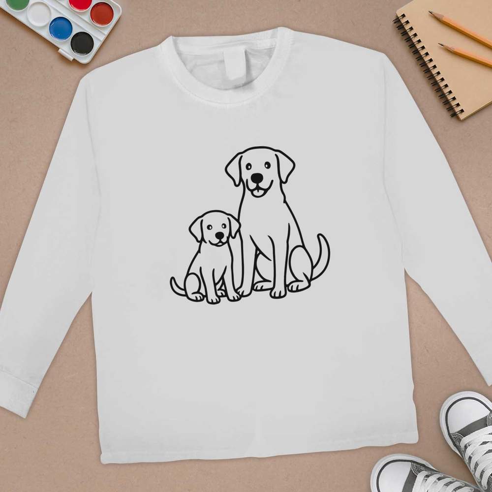 'A heartwarming illustration featuring an adult Labrador with its puppy, celebrating canine companionship and family bonds.'