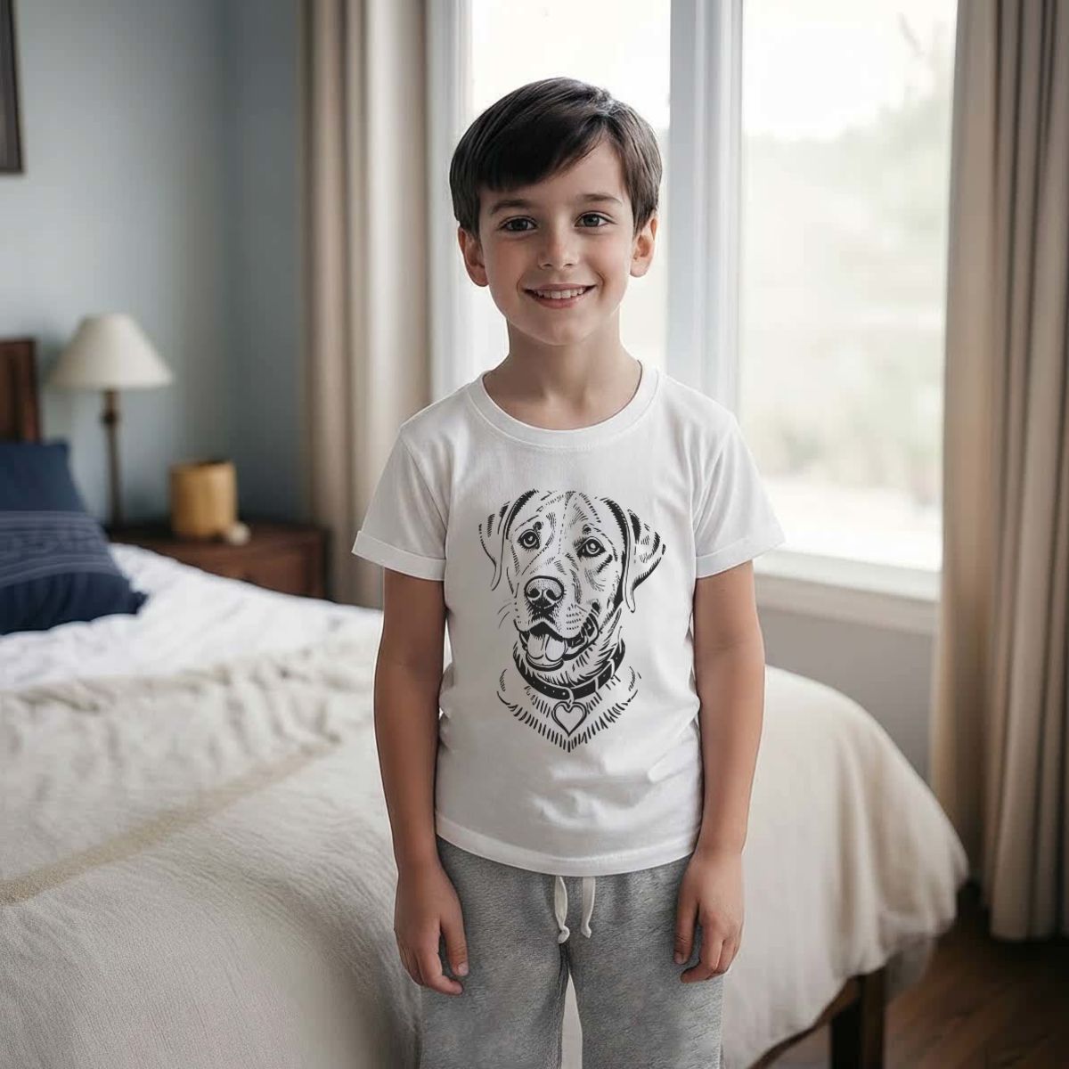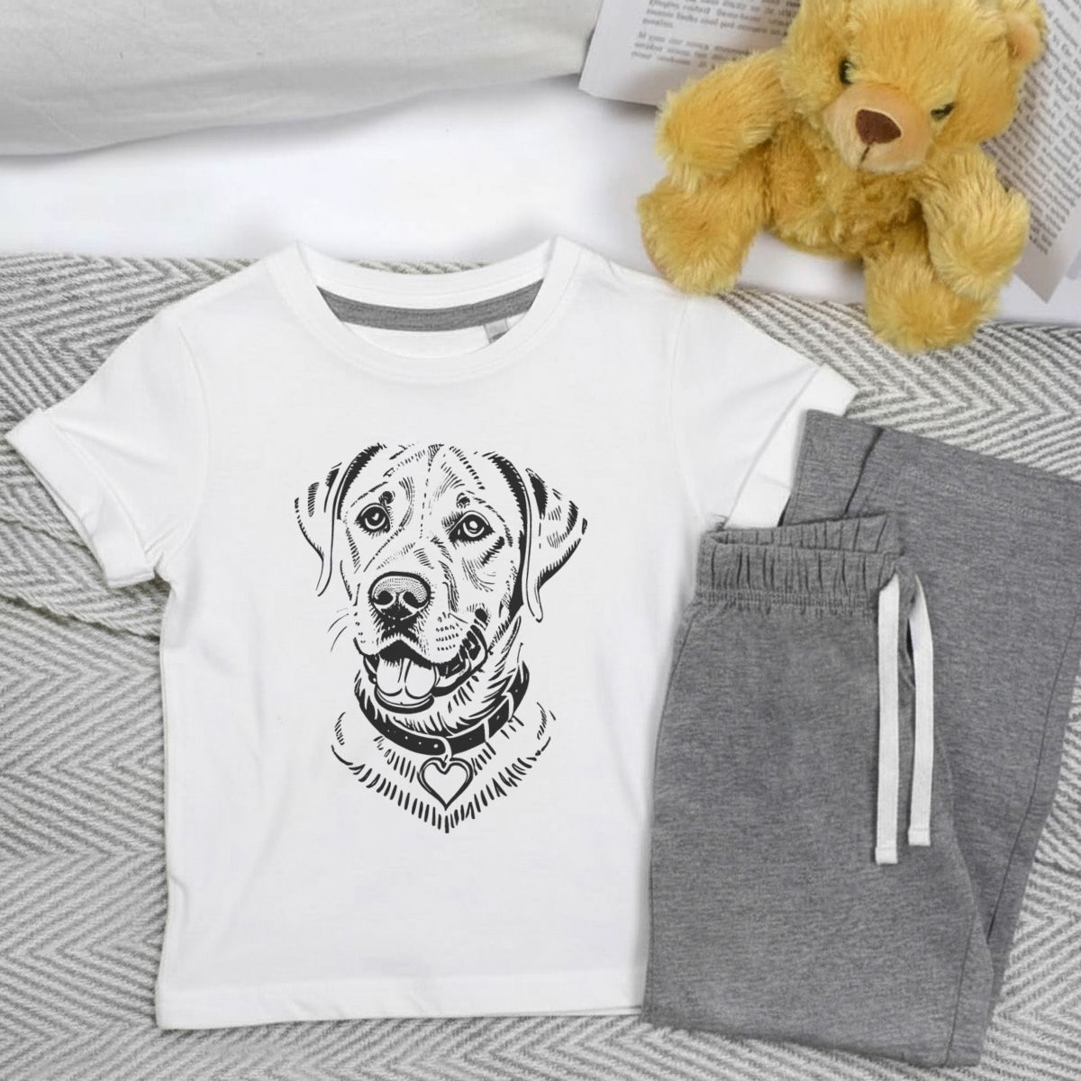'Labrador Retriever Dog' Kids Cotton Pyjama Set – Comfortable Children's Nightwear, Sleepwear and Loungewear - Unisex for Boys and Girls - Grey, 7-8 Years (KP00141863)