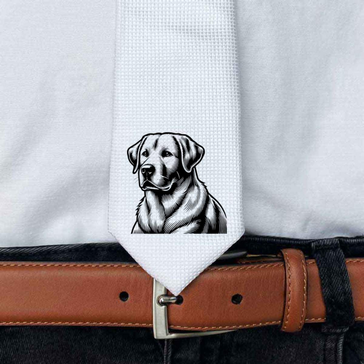 This stylish slim white tie is guaranteed to add class to any outfit. Printed on the front with a design from one of our talented designers, these ties are perfect for formal events, special occasions or making a statement at the office.