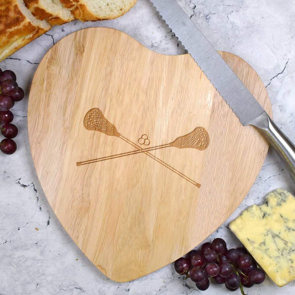 'Lacrosse Sticks' Wooden Heart Shaped Chopping / Cutting Board (WB00052294)