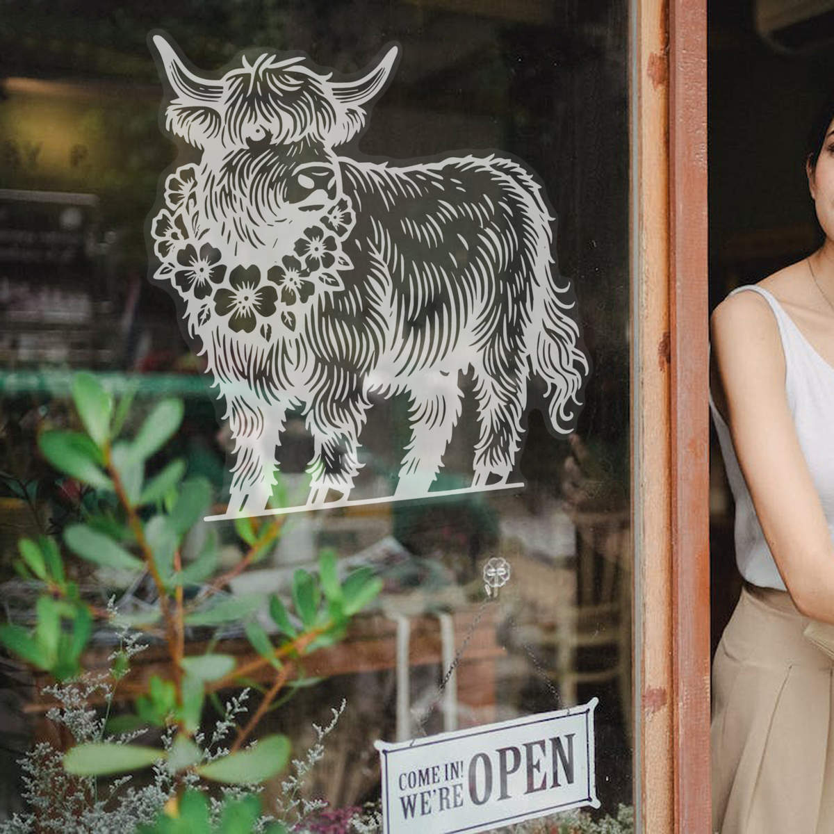 'highland cow, flowers, '