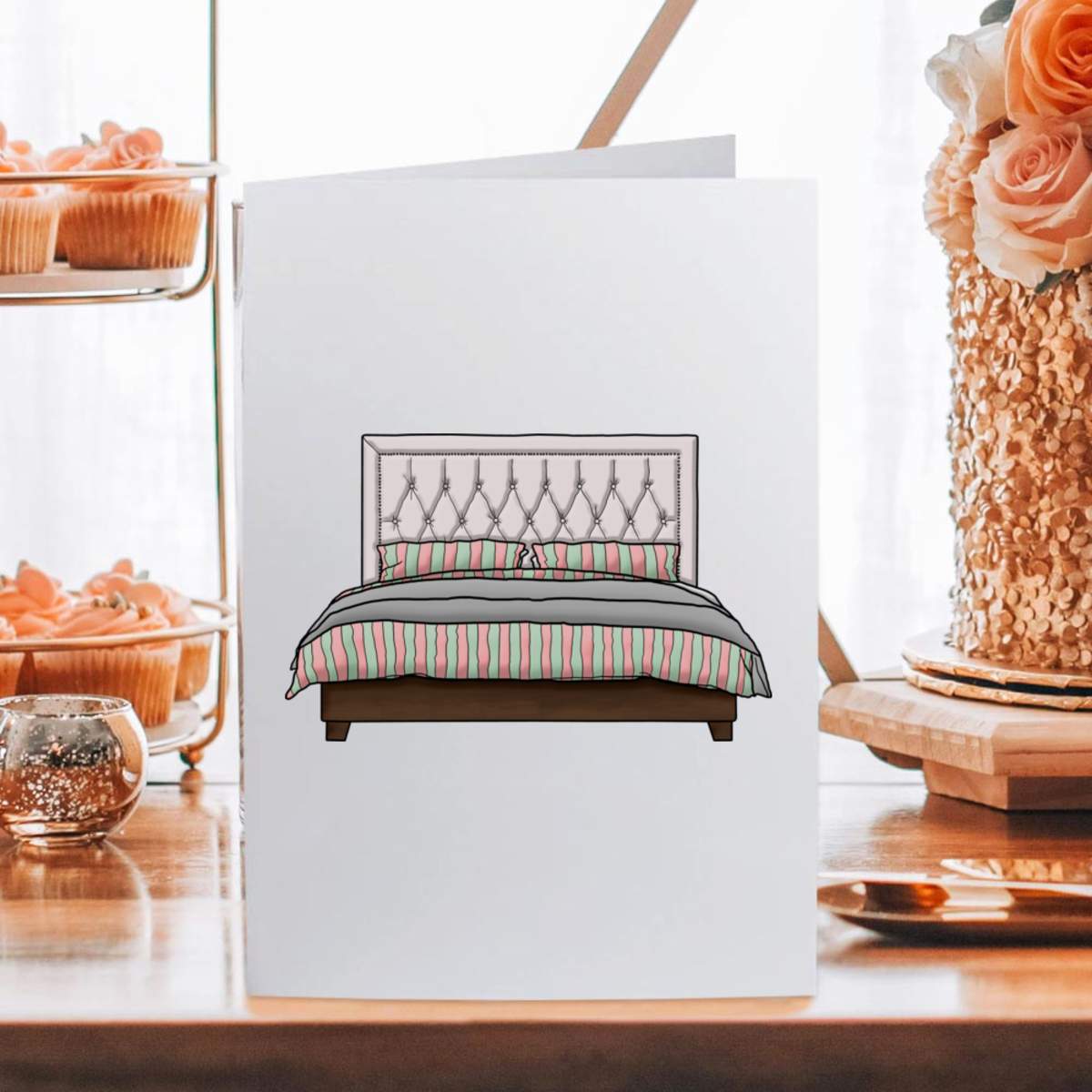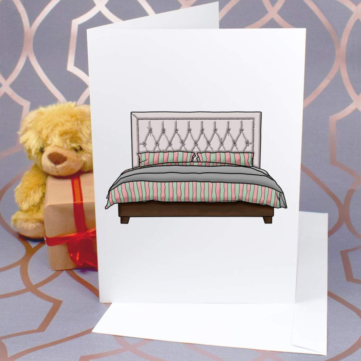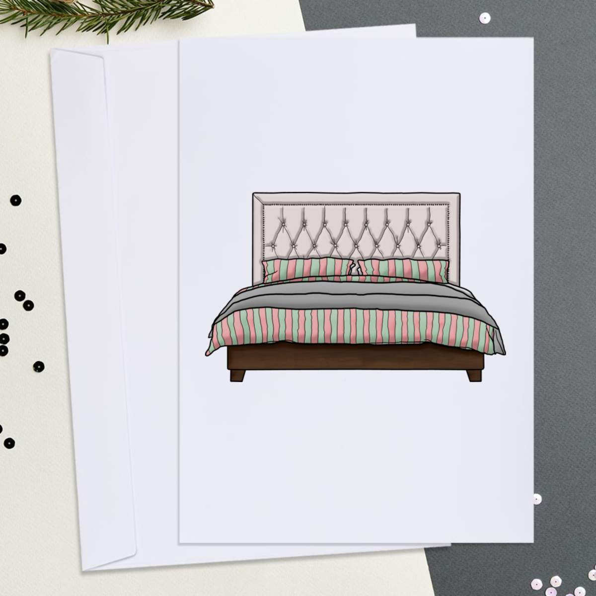 Large (A4) 'Double Bed' Blank Greeting Card (GC00032185)