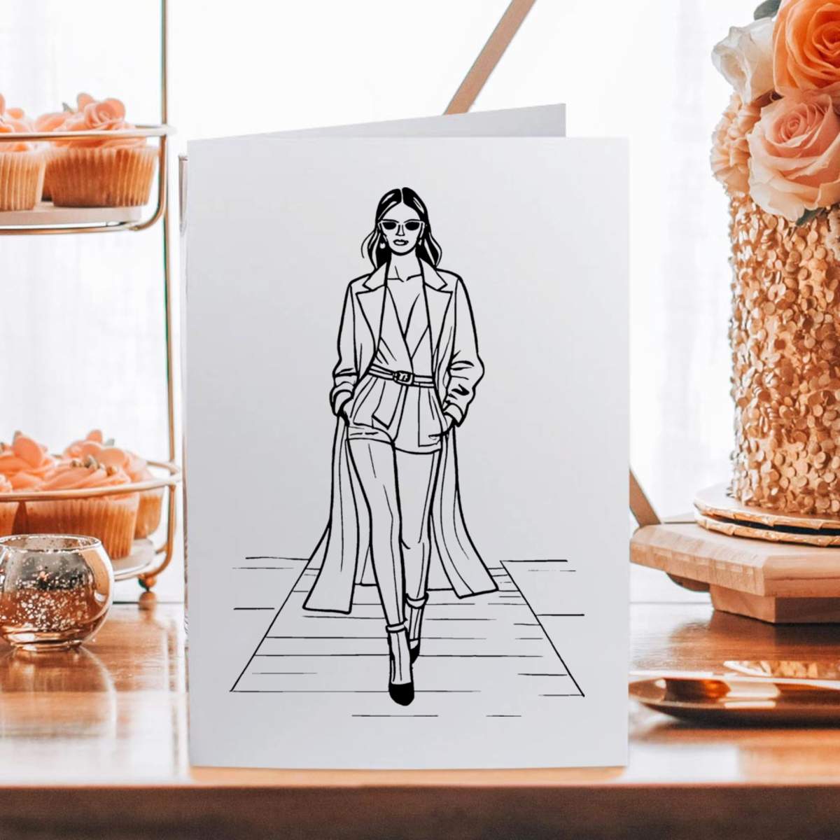 Large (A4) 'Fashion Runway Model' Blank Greeting Card (GC00060380)