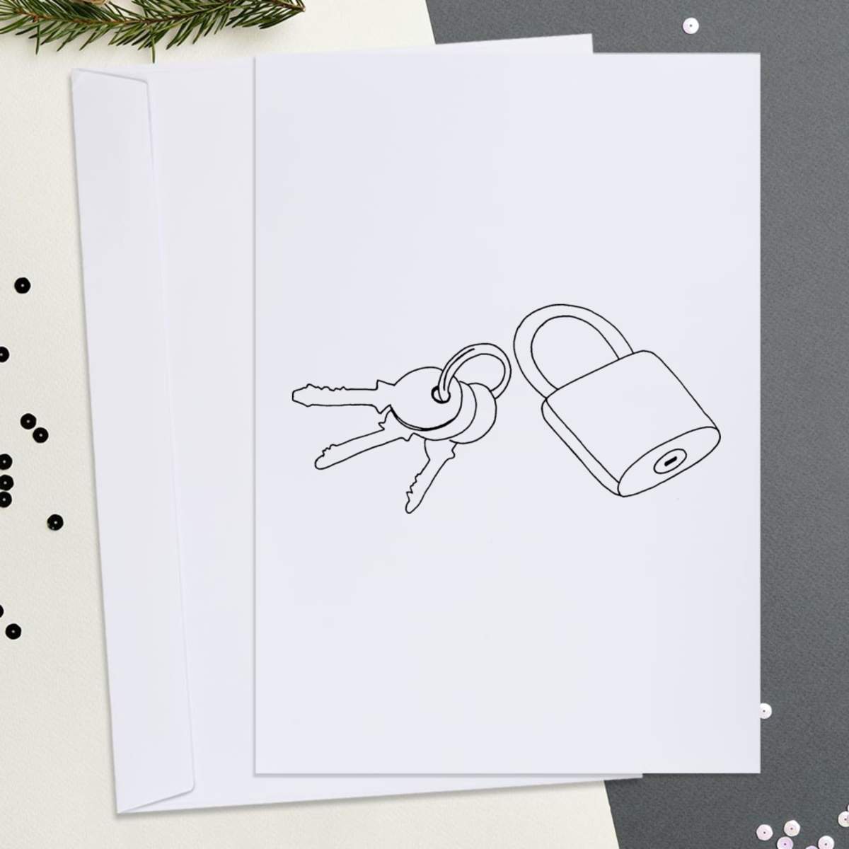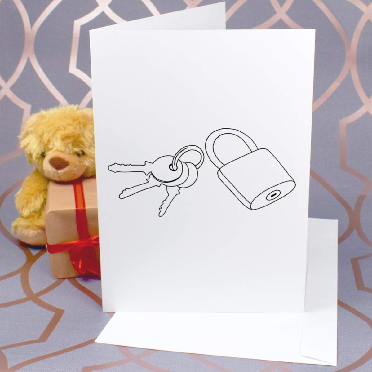 Large (A4) 'Lock & Keys' Blank Greeting Card (GC00026401)