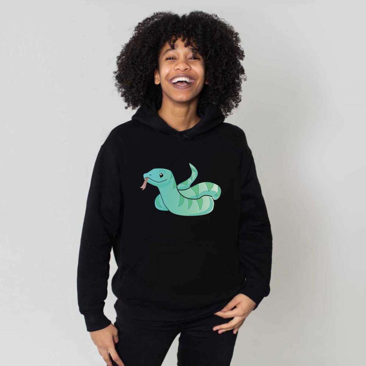 Large 'Green Snake' Adult Hoodie / Hooded Sweater / Jumper (Black) (HO00174743)
