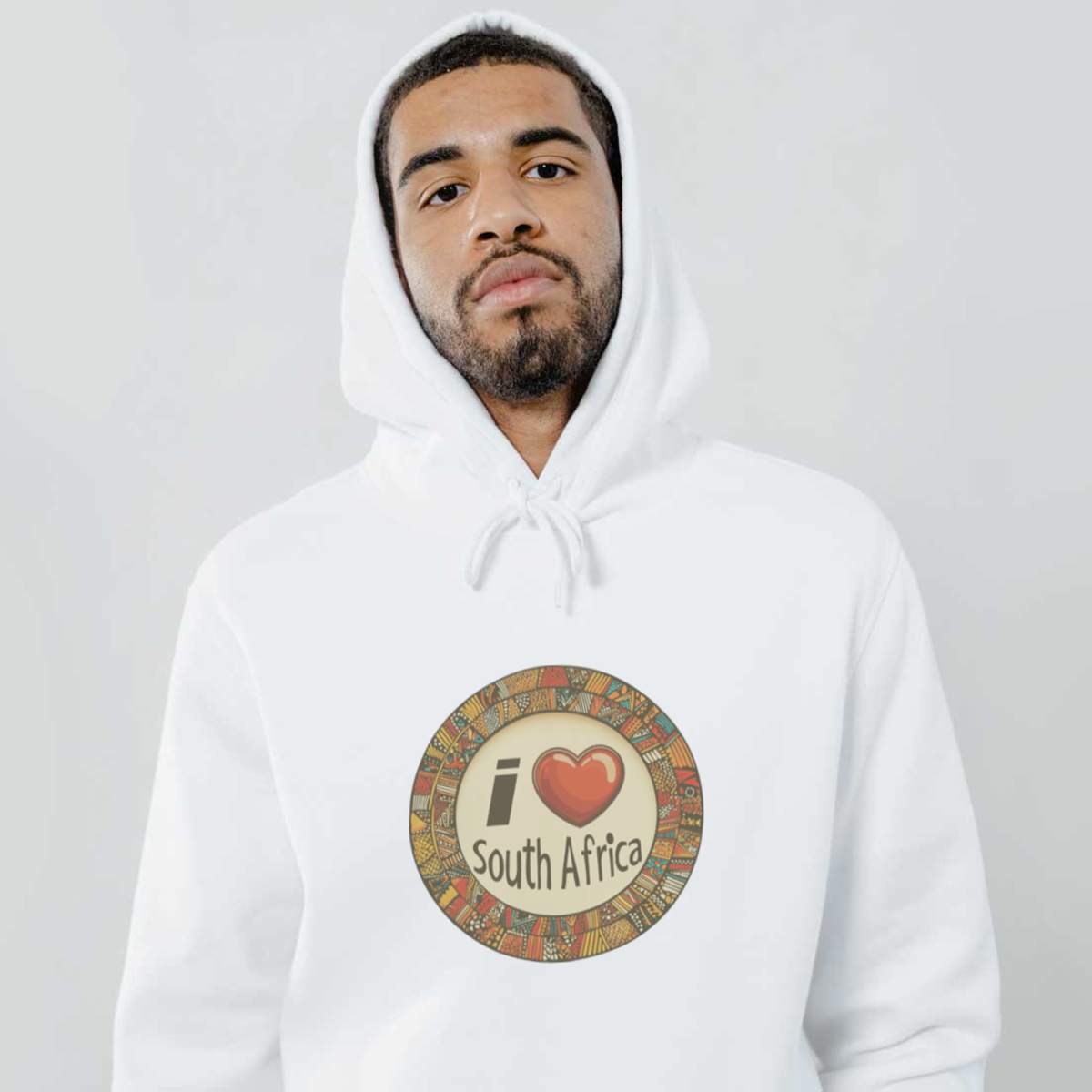 Large 'I Love South Africa with Heart' Adult Hoodie / Hooded Sweater (White) (HO00317776)
