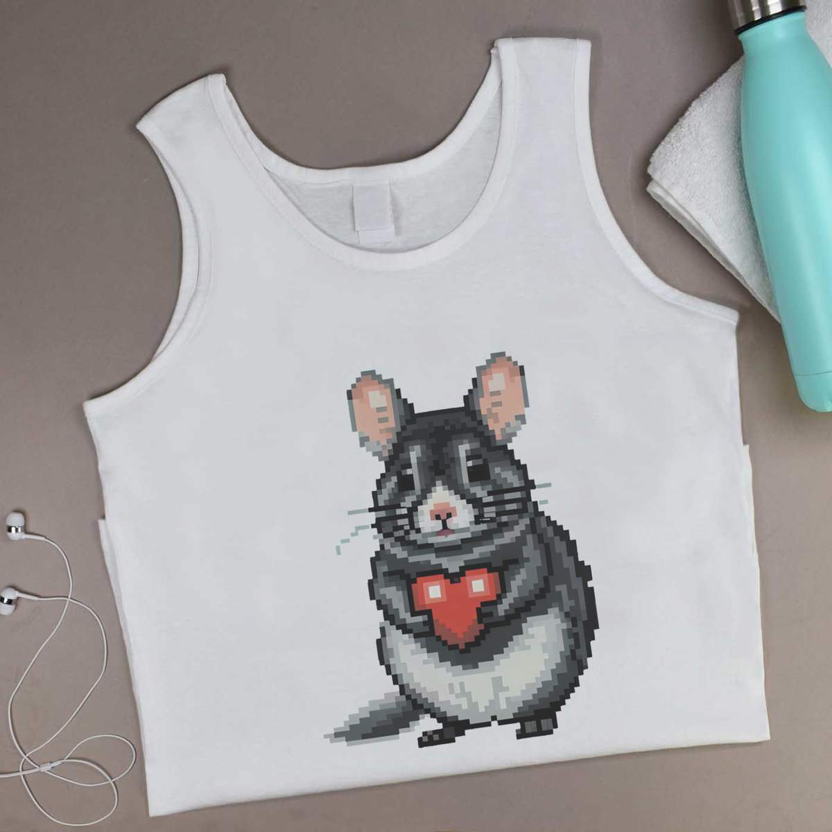 Large 'Pixel Art Chinchilla Holding Heart' Adult Vest / Tank Top (AV00115529)