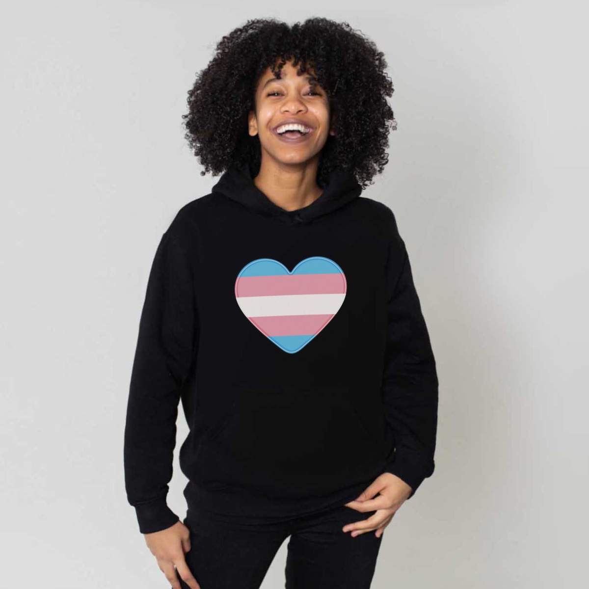 Large 'Transgender Flag Heart' Adult Hoodie / Hooded Sweater / Jumper (Black) (HO00200615)