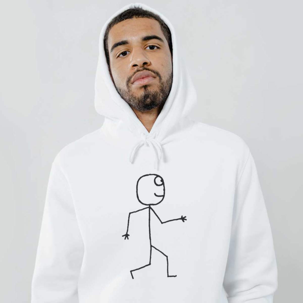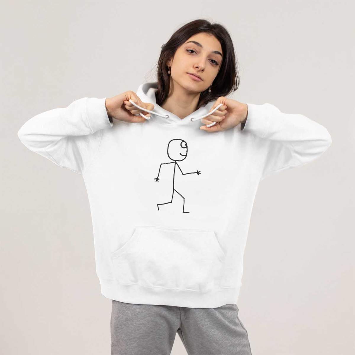 Large 'Walking Stickman' Adult Hoodie / Hooded Sweater (White) (HO00053467)