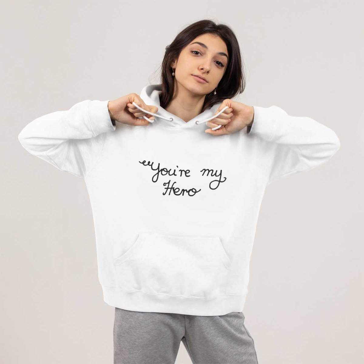 Large 'You're My Hero' Adult Hoodie / Hooded Sweater (White) (HO00048127)
