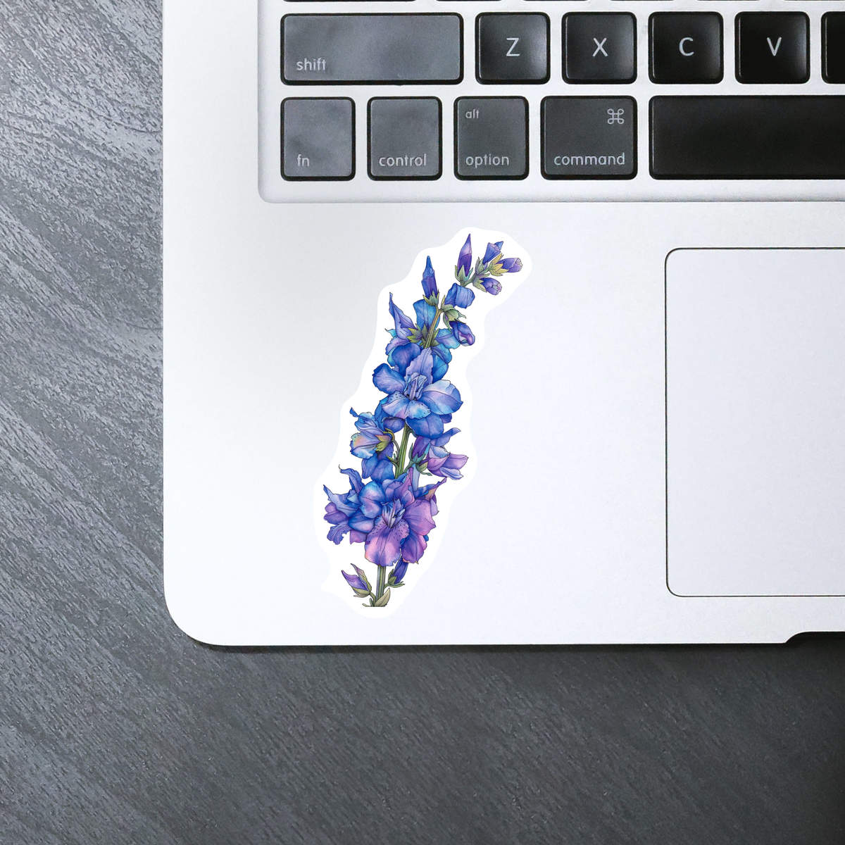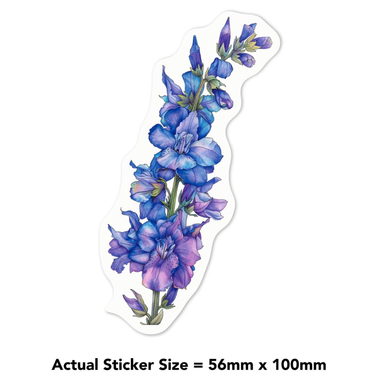 'Larkspur Flower ' White Premium Vinyl Decal Sticker – Waterproof, Durable & Easy to Apply - For Car Bumpers, Windows, Bins & More - Medium (100mm) (DW00120629)