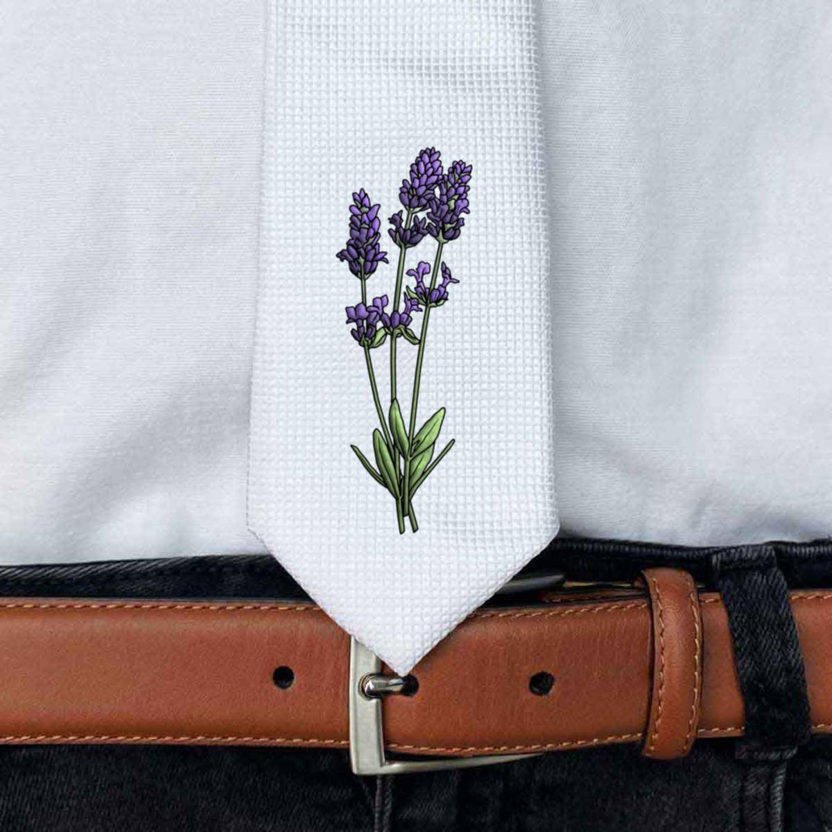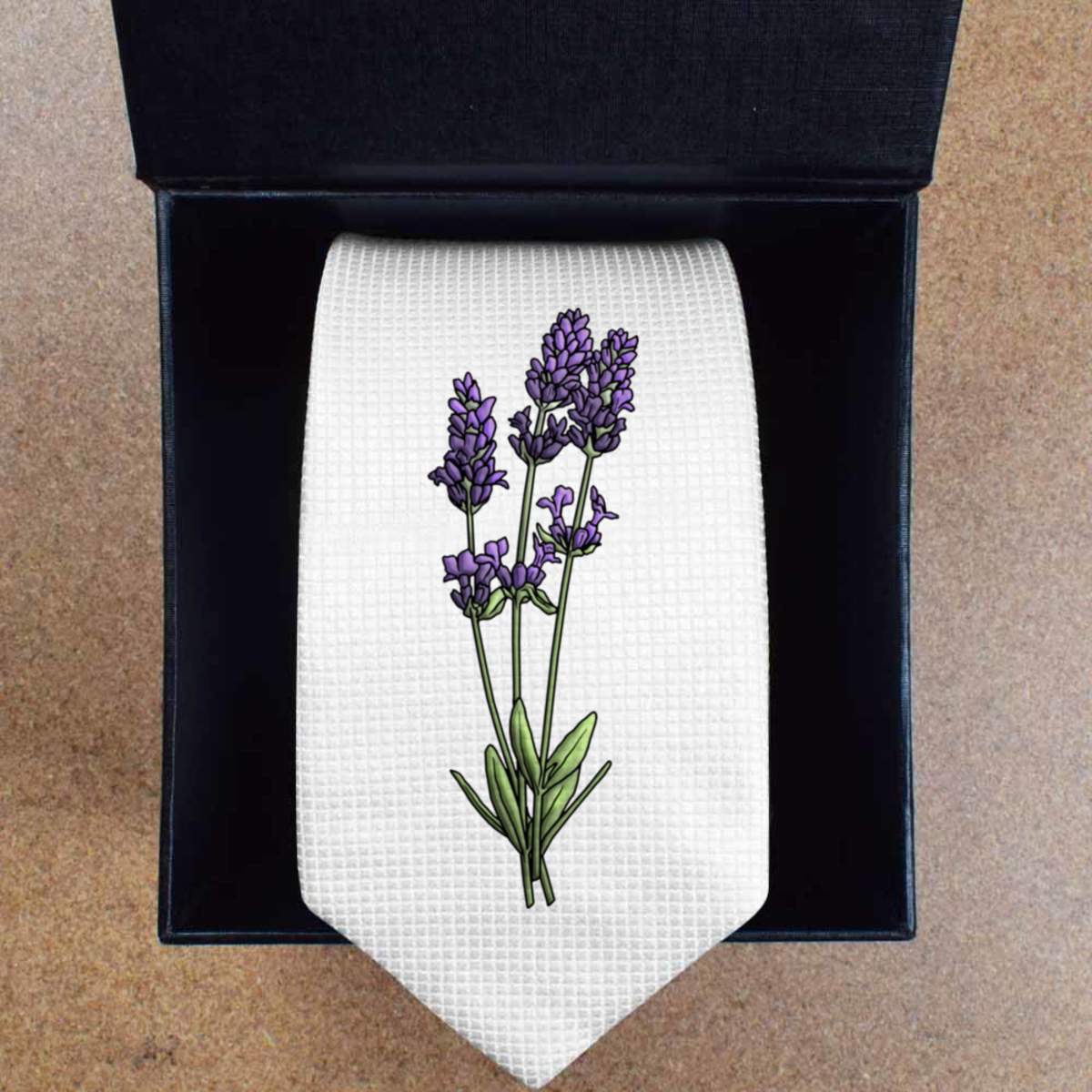 'Lavender Flowers' White Tie / Necktie with Gift Box (AT00009103)