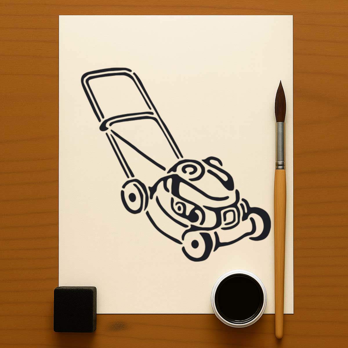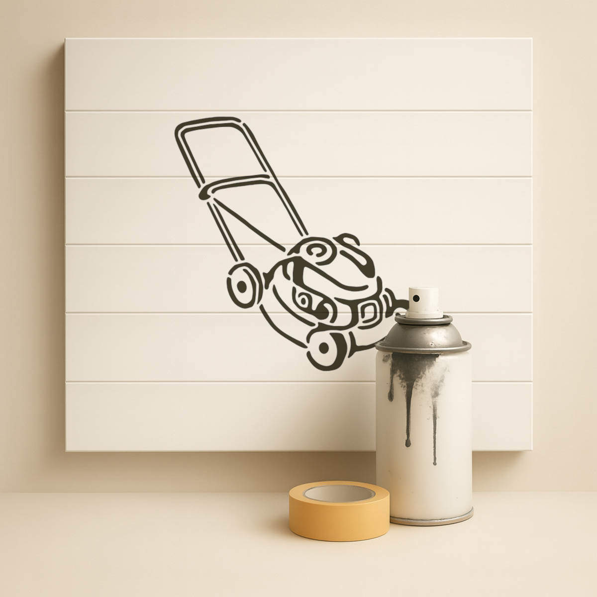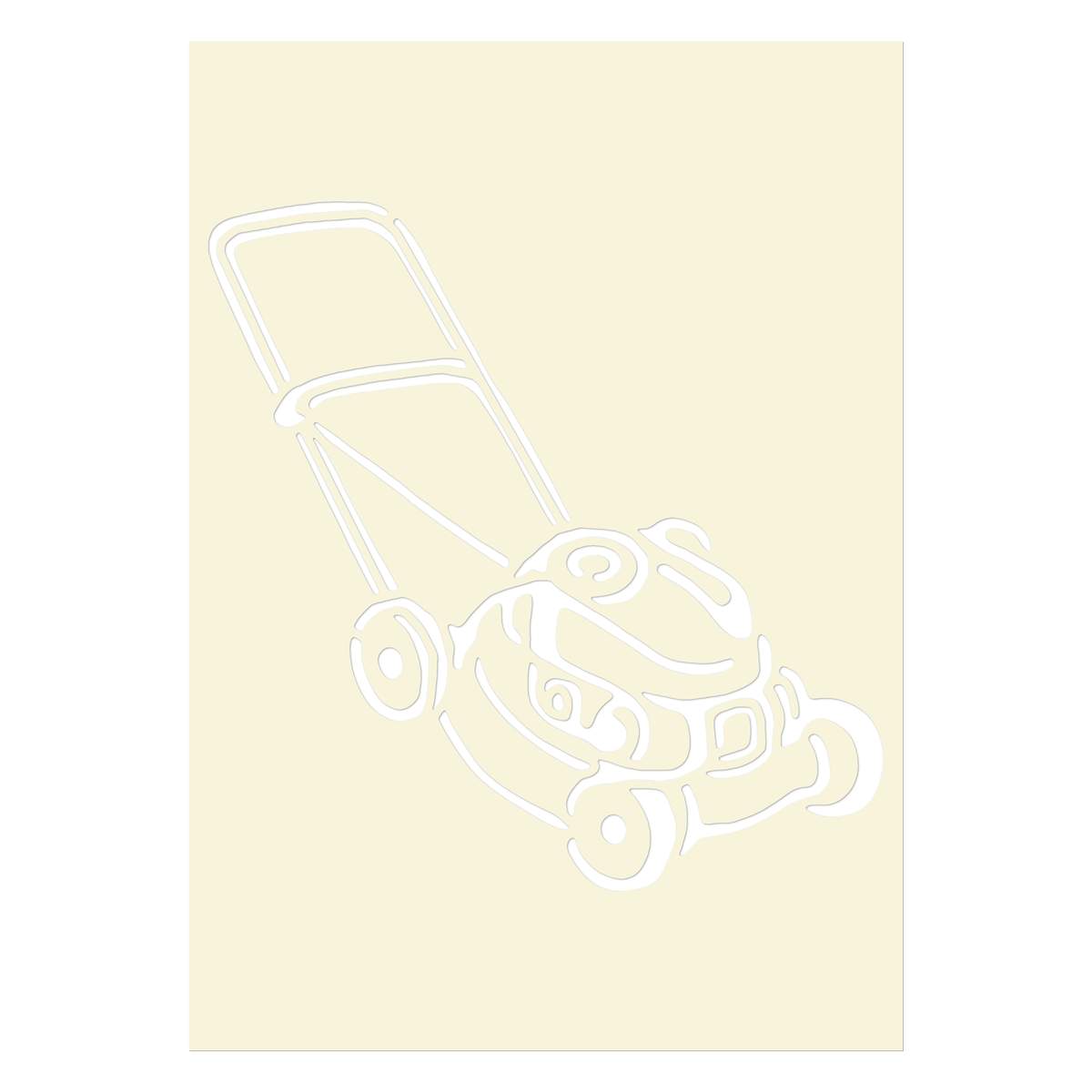 'Lawnmower' Reusable Stencil – Durable Decorative Template for Painting and Spraying on Walls, Tiles, Wood, Fabric & Craft Projects - M (A5) (WS00032888)