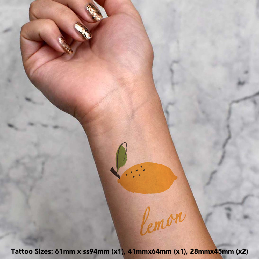 'Lemon Citrus Fruit Illustration Drawing' Temporary Tattoos - Water Resistant, Skin-Safe, Non-Toxic Transfers (TO040260)