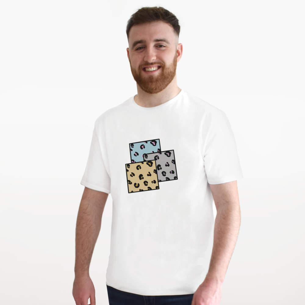 'Leopard Print Squares' Unisex T-Shirt - 100 % Cotton, White, M (TA00084250)