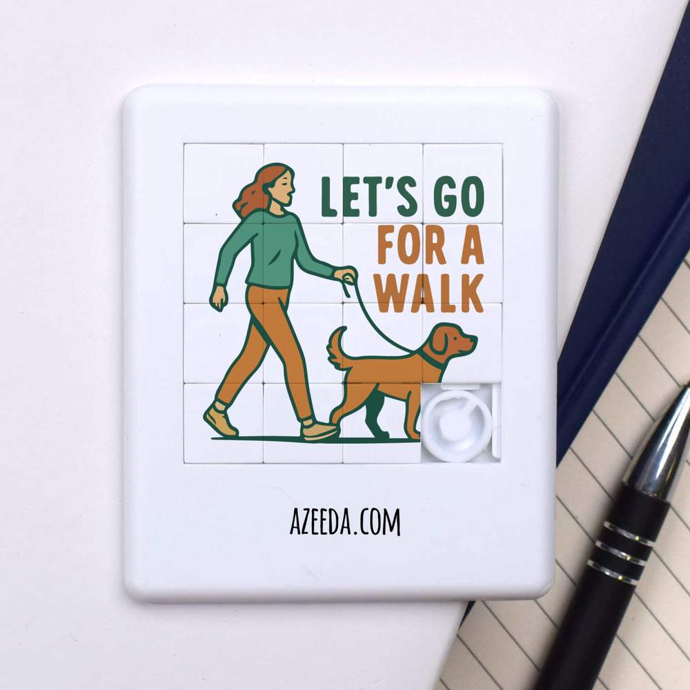 'A delightful design featuring a person walking their dog, perfect for dog owners and outdoor enthusiasts.'