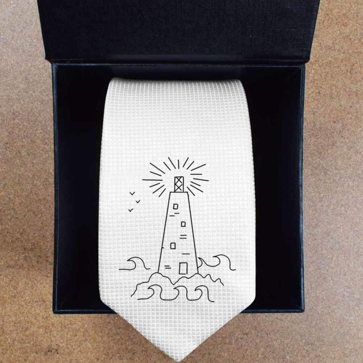 This stylish slim white tie is guaranteed to add class to any outfit. Printed on the front with a design from one of our talented designers, these ties are perfect for formal events, special occasions or making a statement at the office.