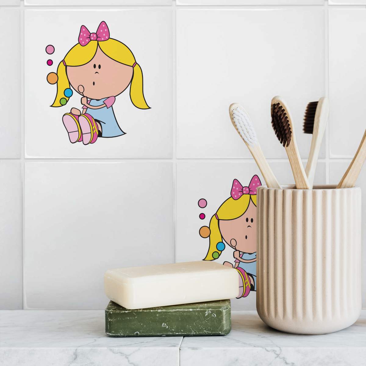 'Little Girl Blowing Bubbles' 108mm Square Ceramic Tile (TD00024364)