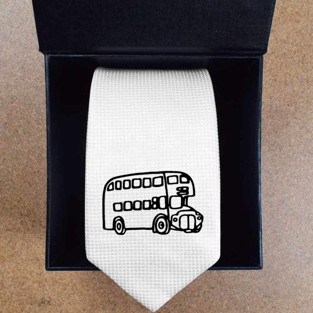 'London Bus' White Tie / Necktie with Gift Box (AT00003728)