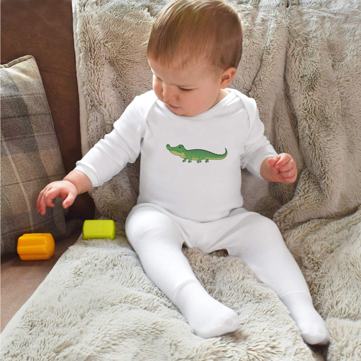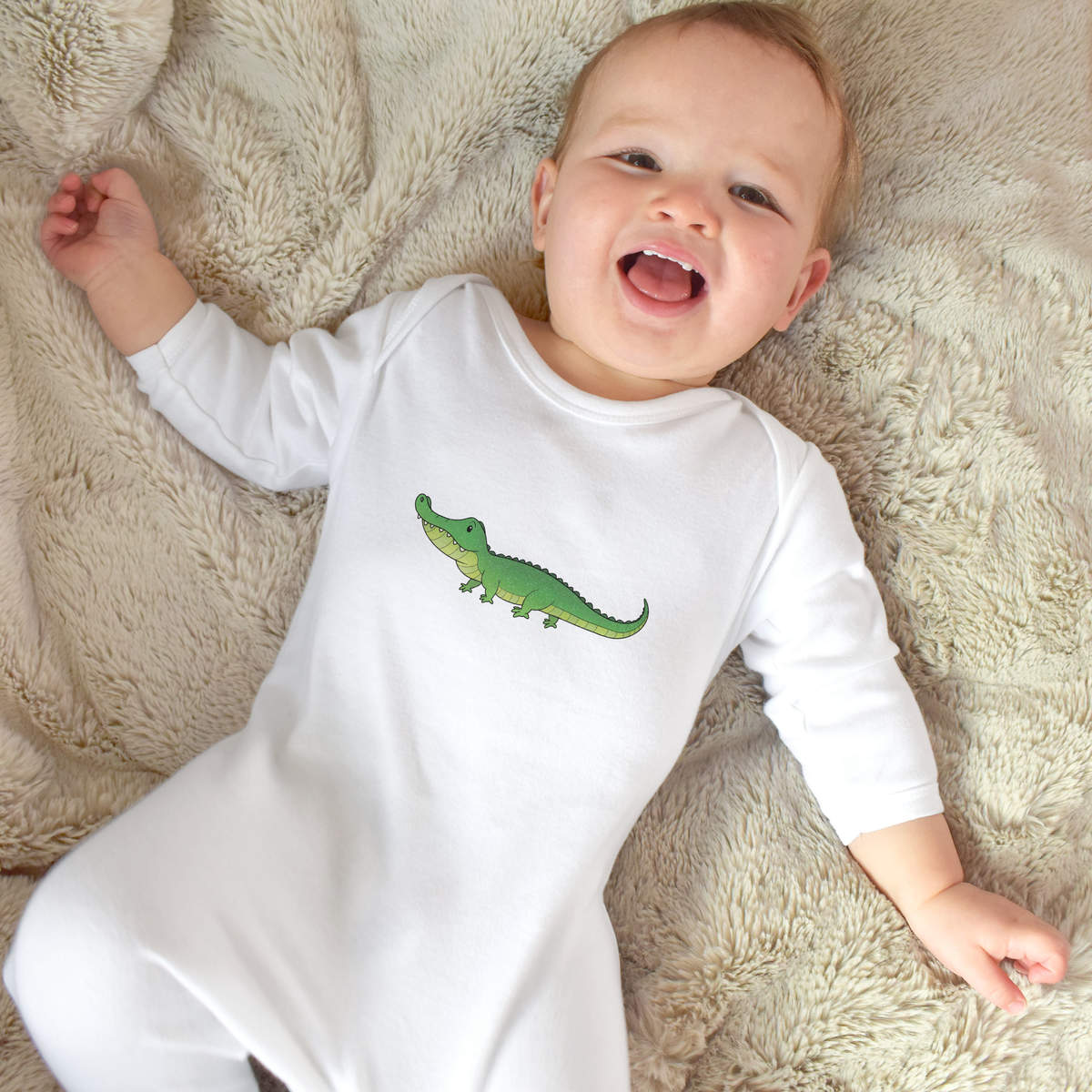 Little ones can sleep peacefully in this super soft romper sleepsuit. Our unisex jumpsuits are made from 100% cotton and are printed on the front with a unique design. Practical functions include popper fastenings for ease of changing and built-in feet.