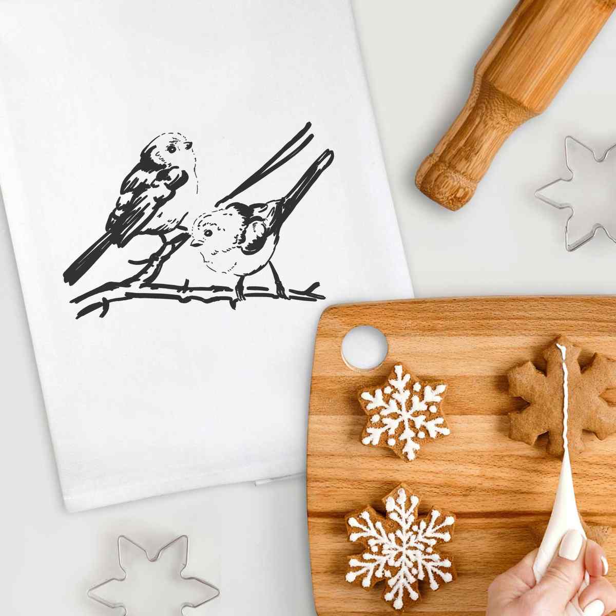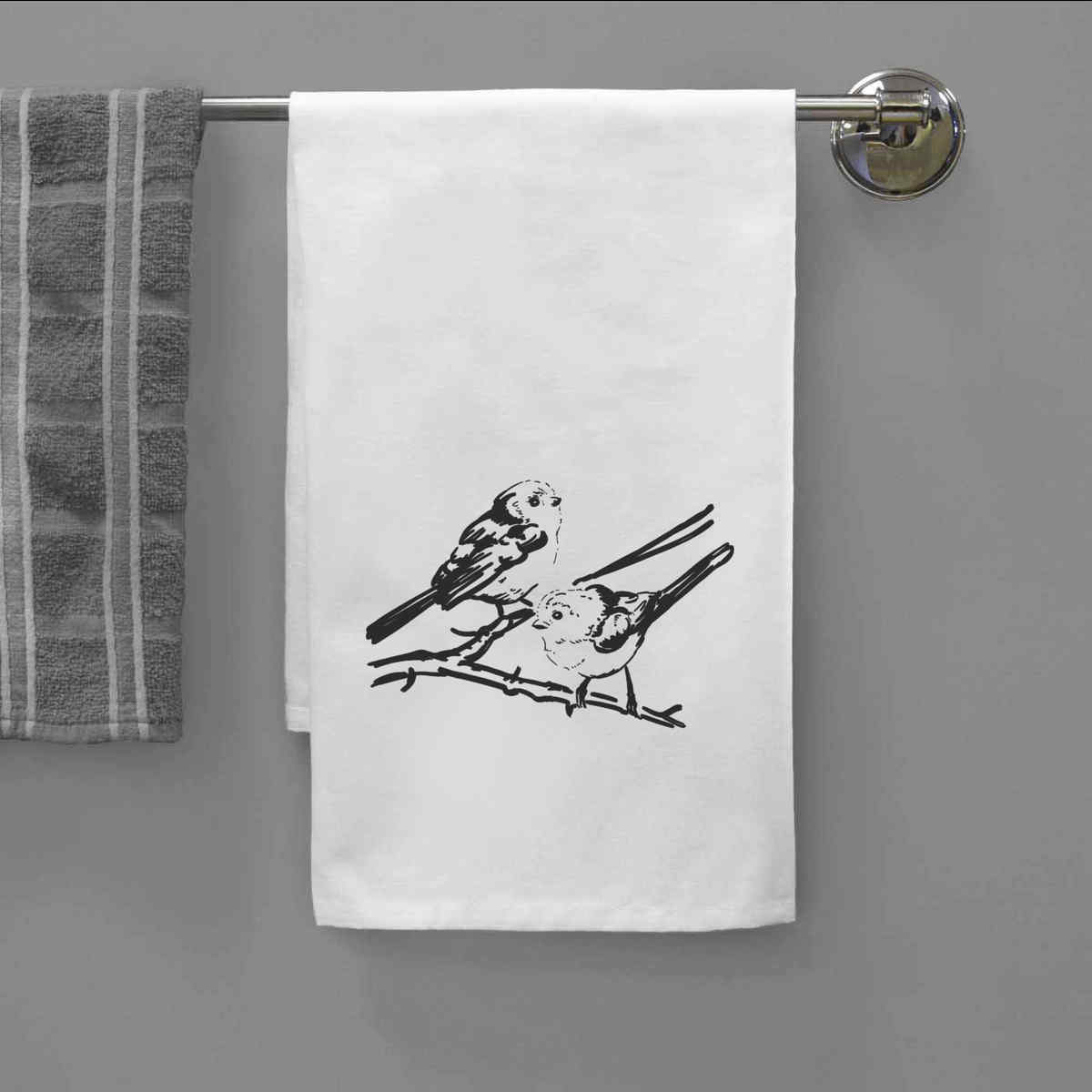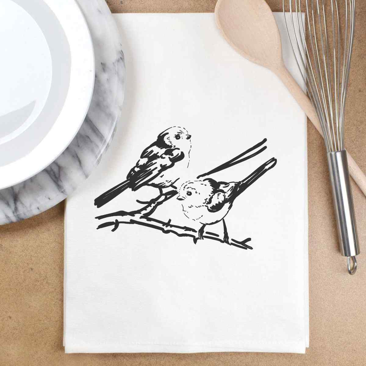 'Long Tailed Tits' Cotton Tea Towel / Dish Cloth (TW025383)