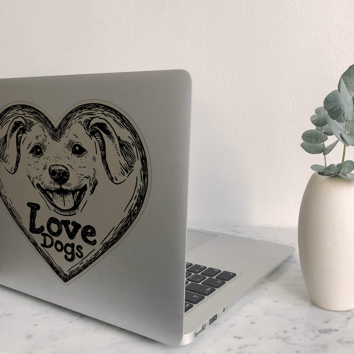 'Love Dogs Happy Puppy in Heart' Clear Premium Vinyl Decal Stickers – Waterproof, Durable & Easy to Apply - For Car Bumpers, Windows, Bins & More - Large (210mm) (DC00135490)