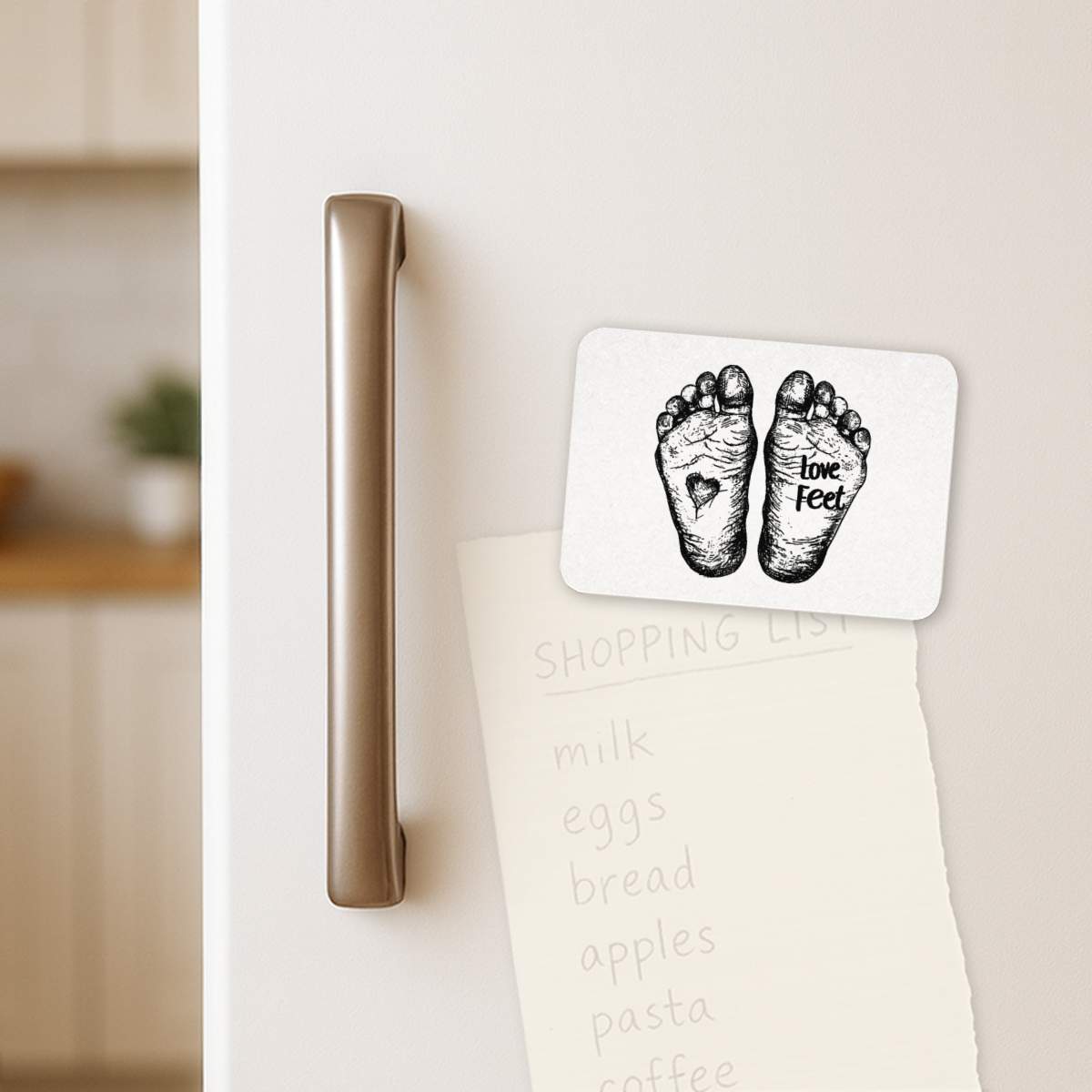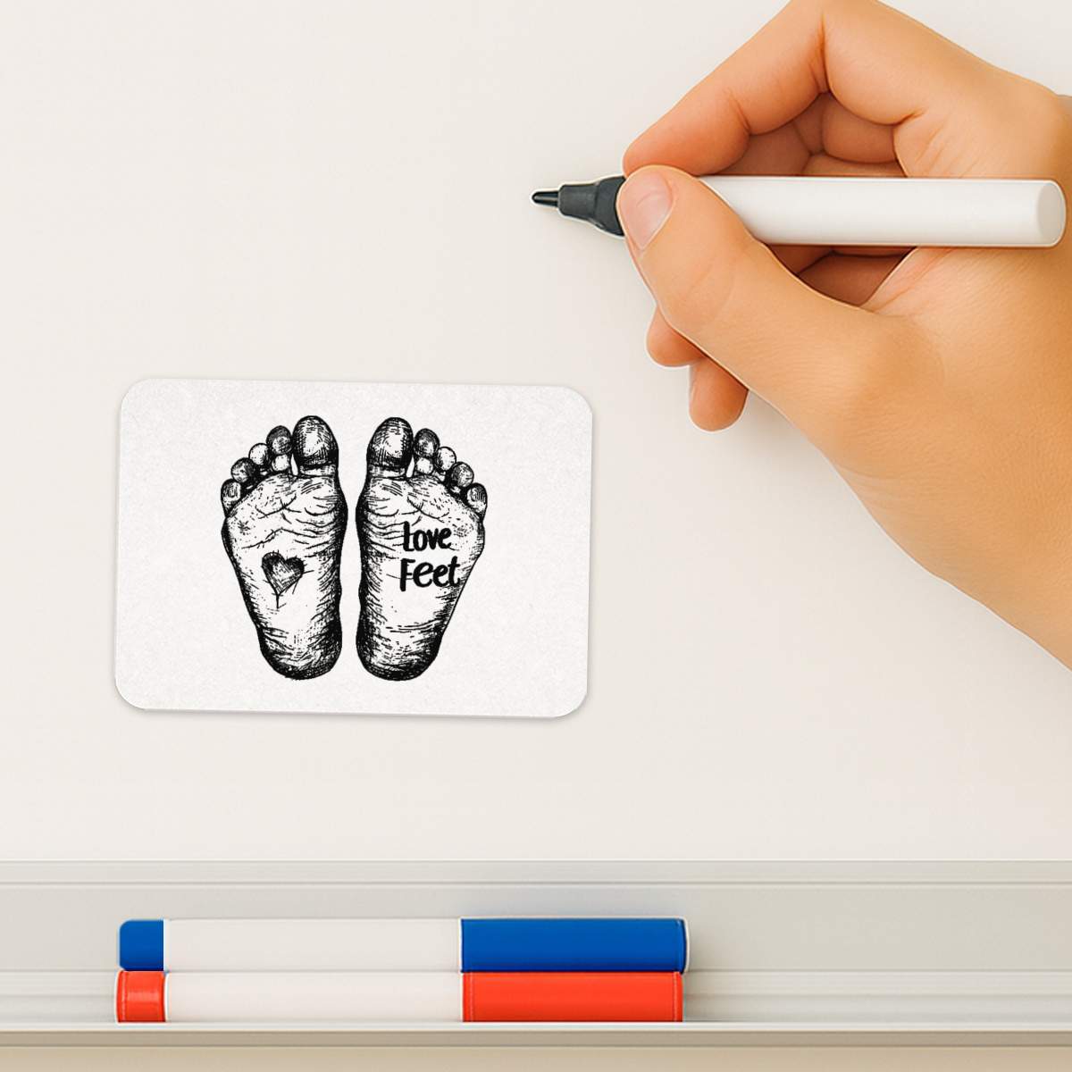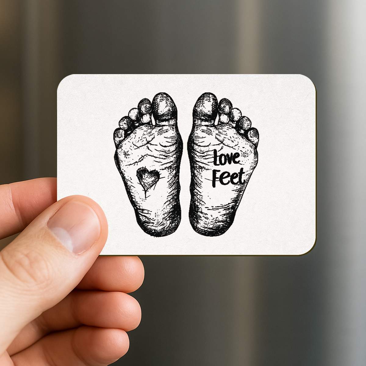 'Love Feet with Sketchy Feet and Heart' Rectangular Fridge Magnet - Decorative Refrigerator & Whiteboard Magnet for Home, Kitchen or Office - 70mm x 49mm (FM00052920)
