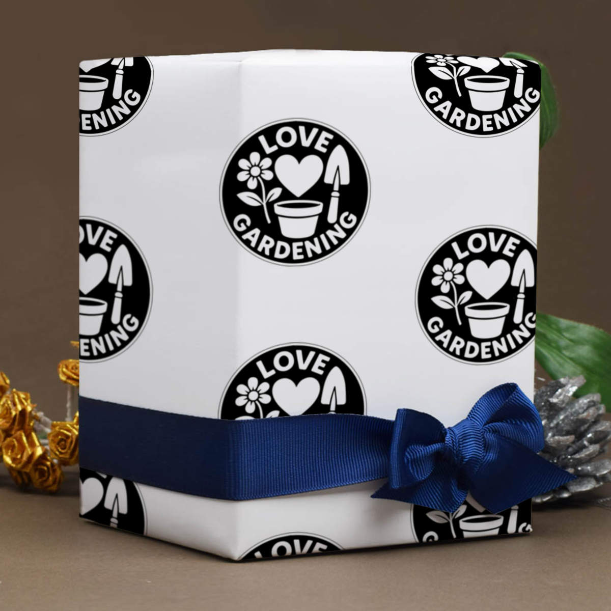 'A logo stating your love for gardening above a flower, heart, plant pot, and shovel.'