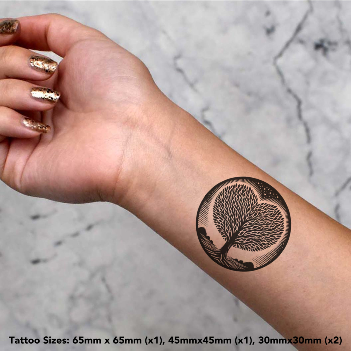 'Love Heart Tree' Temporary Tattoos - Water Resistant, Skin-Safe, Non-Toxic Transfers (TO049630)