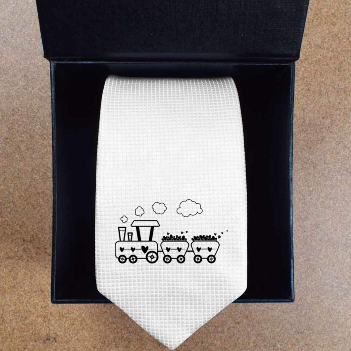 'Love Train' White Tie / Necktie with Gift Box (AT00002736)