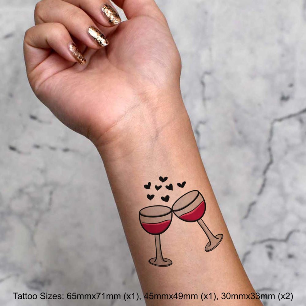 'Love Wine' Temporary Tattoos - Water Resistant, Skin-Safe, Non-Toxic Transfers (TO031376)