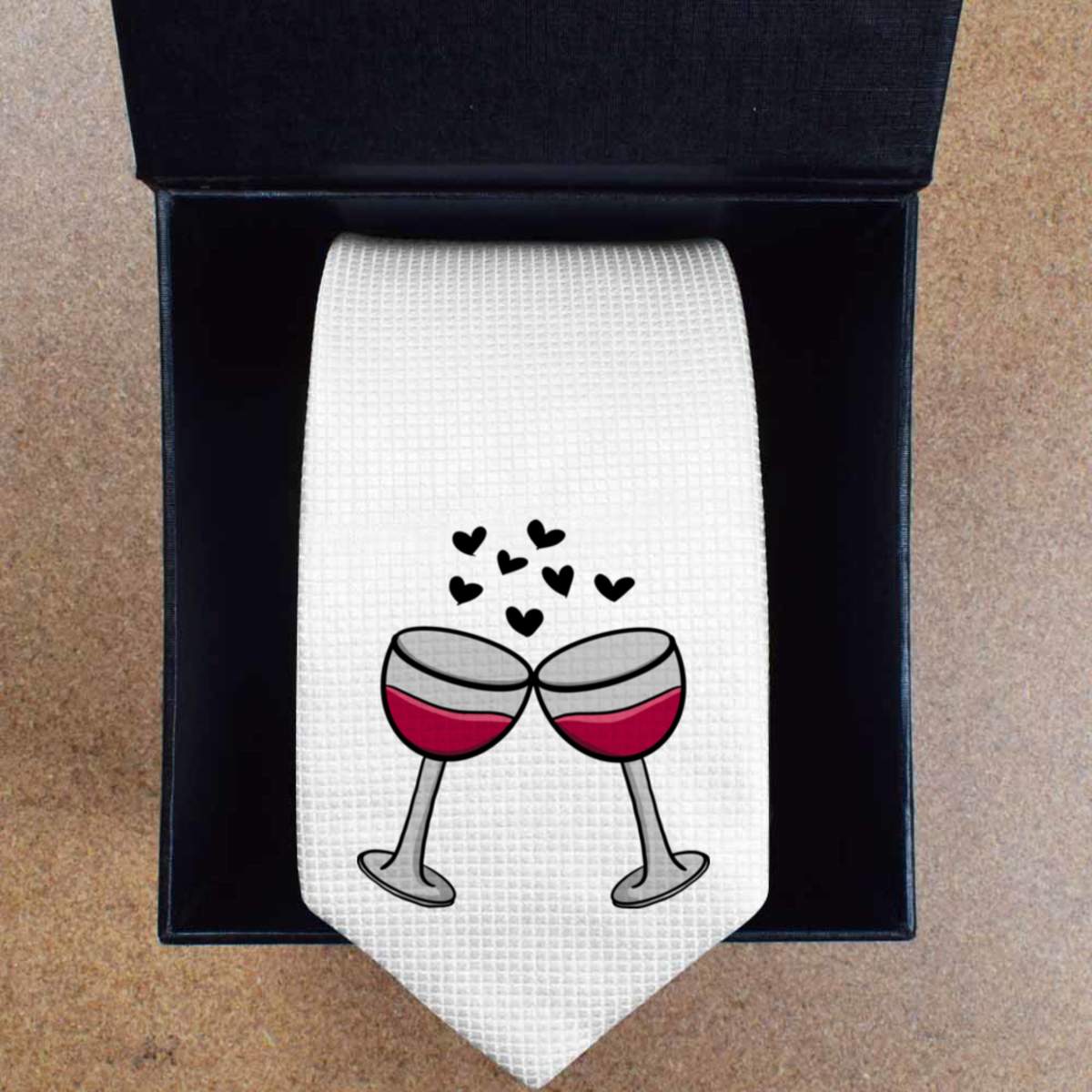 'Love Wine' White Tie / Necktie with Gift Box (AT00009266)