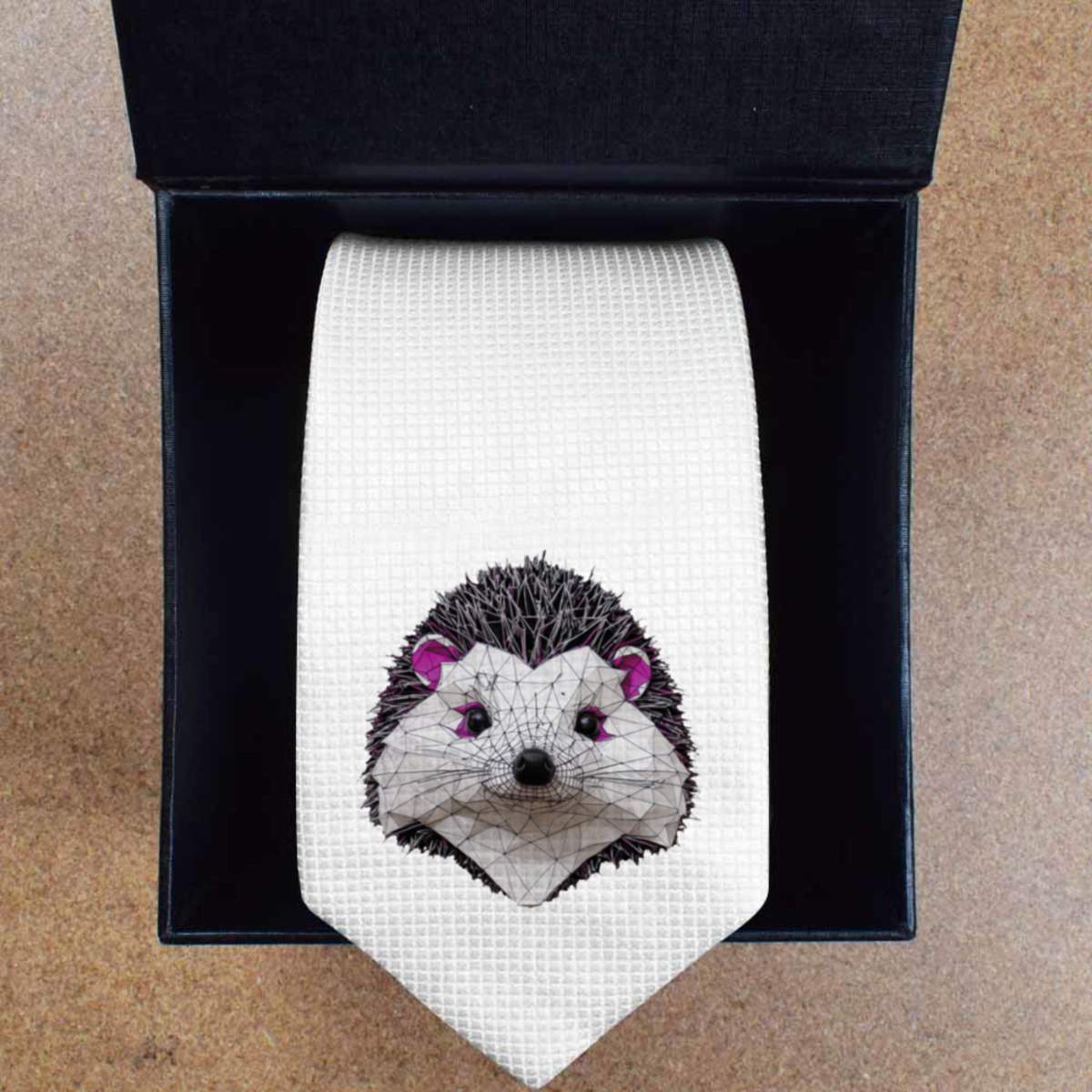'Low Poly Hedgehog' White Tie / Necktie with Gift Box (AT00018450)
